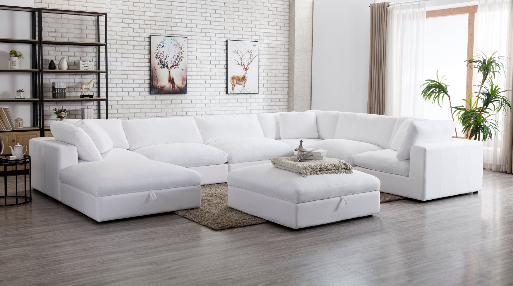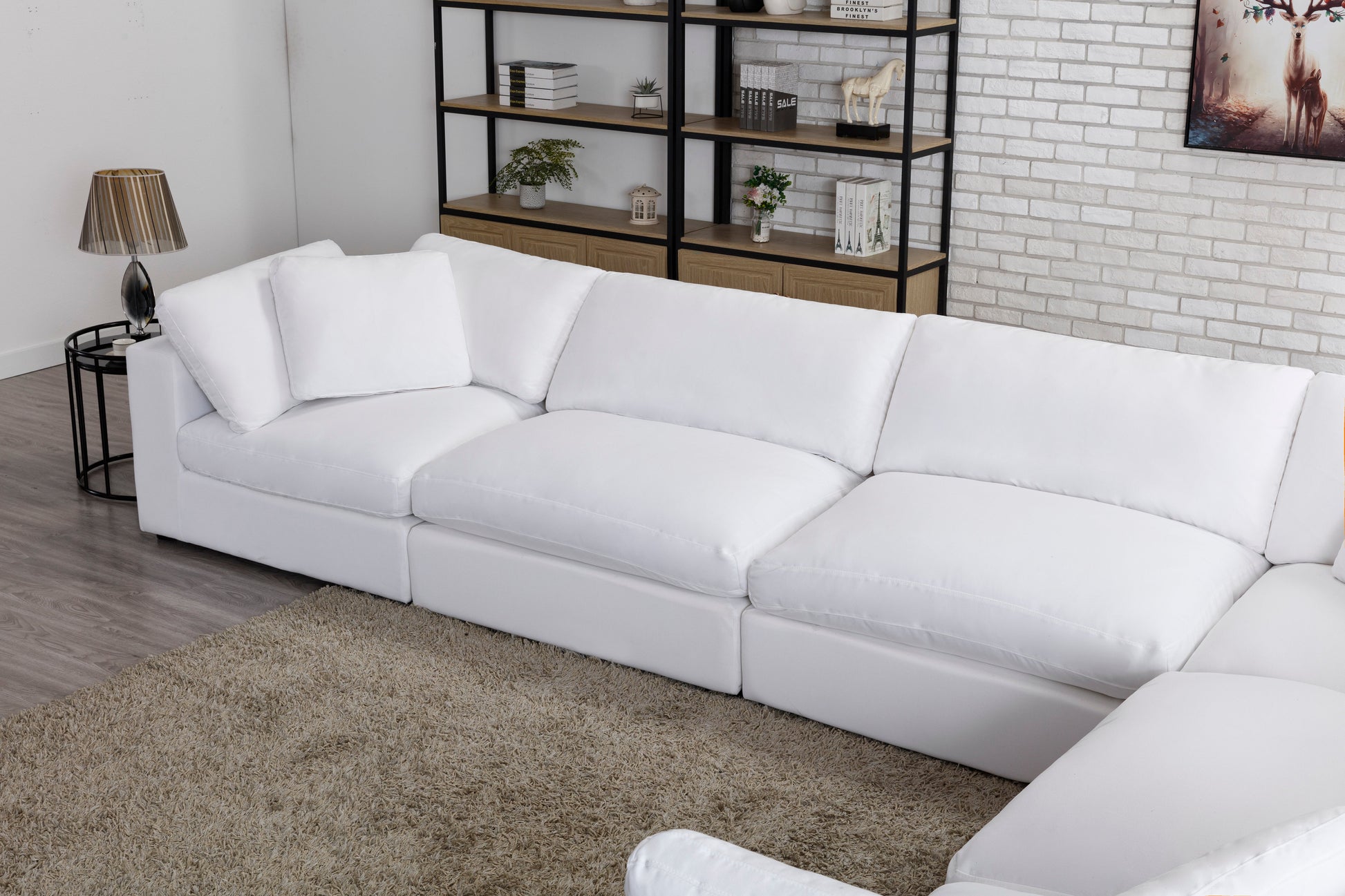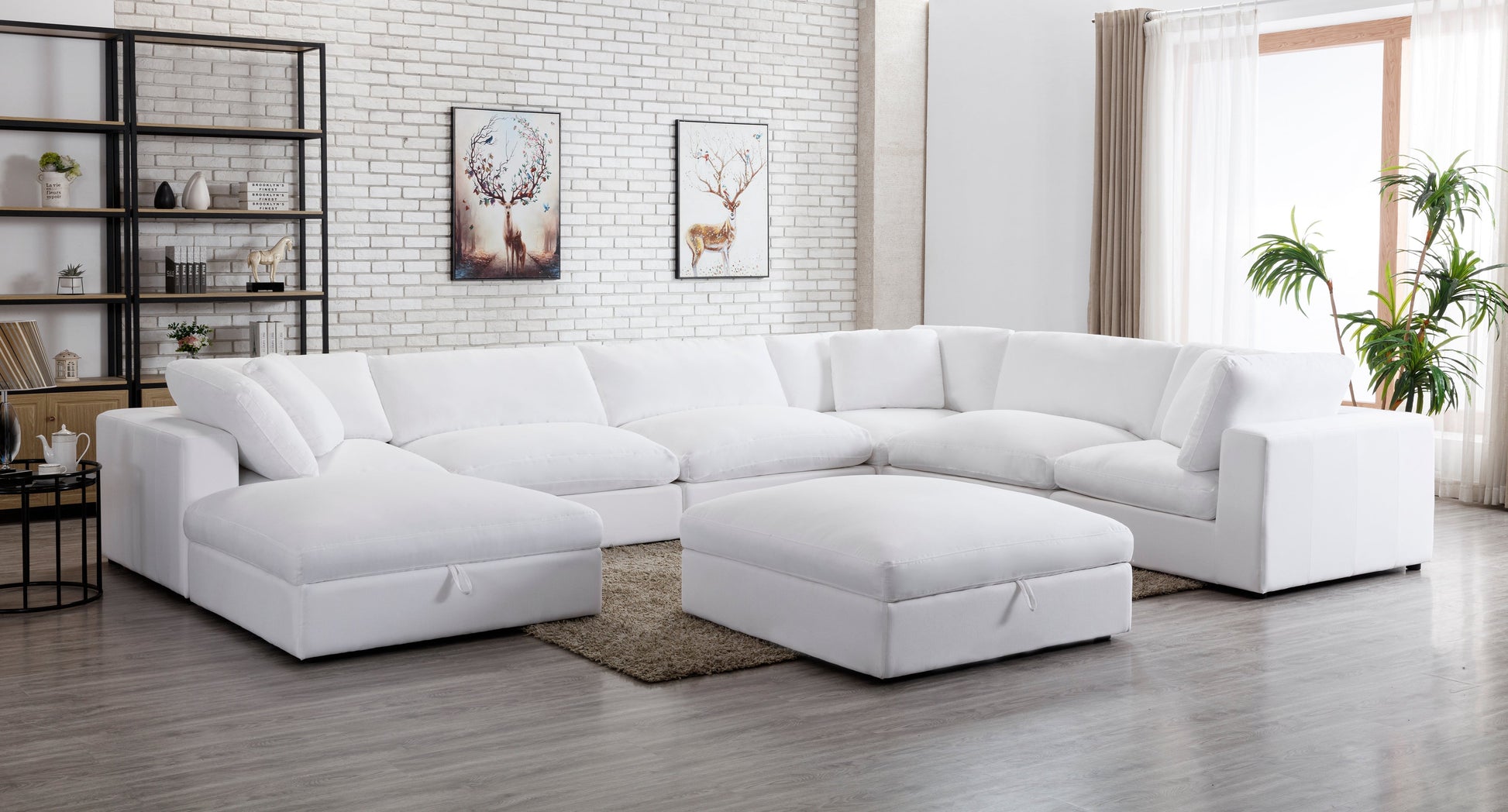 - Includes 3 corner pieces, 3 armless chairs, 2 storage ottomans. This cloud-like modular sofa can be configured in any shape and space, build your personal lounge space with these individual pieces