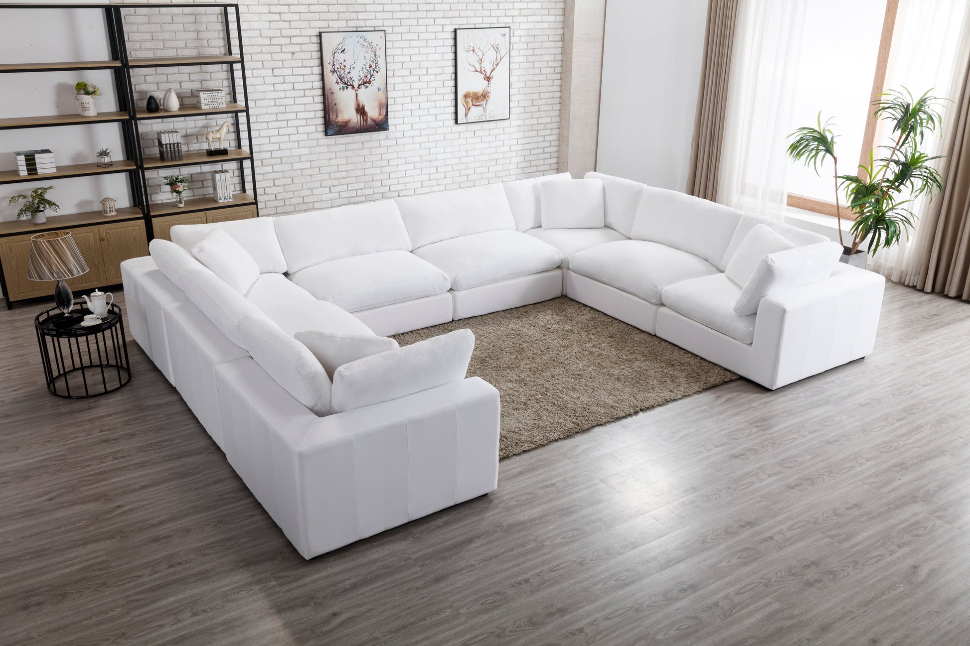 Rivas Contemporary Feather Fill 8-Piece Modular Sectional Sofa, White