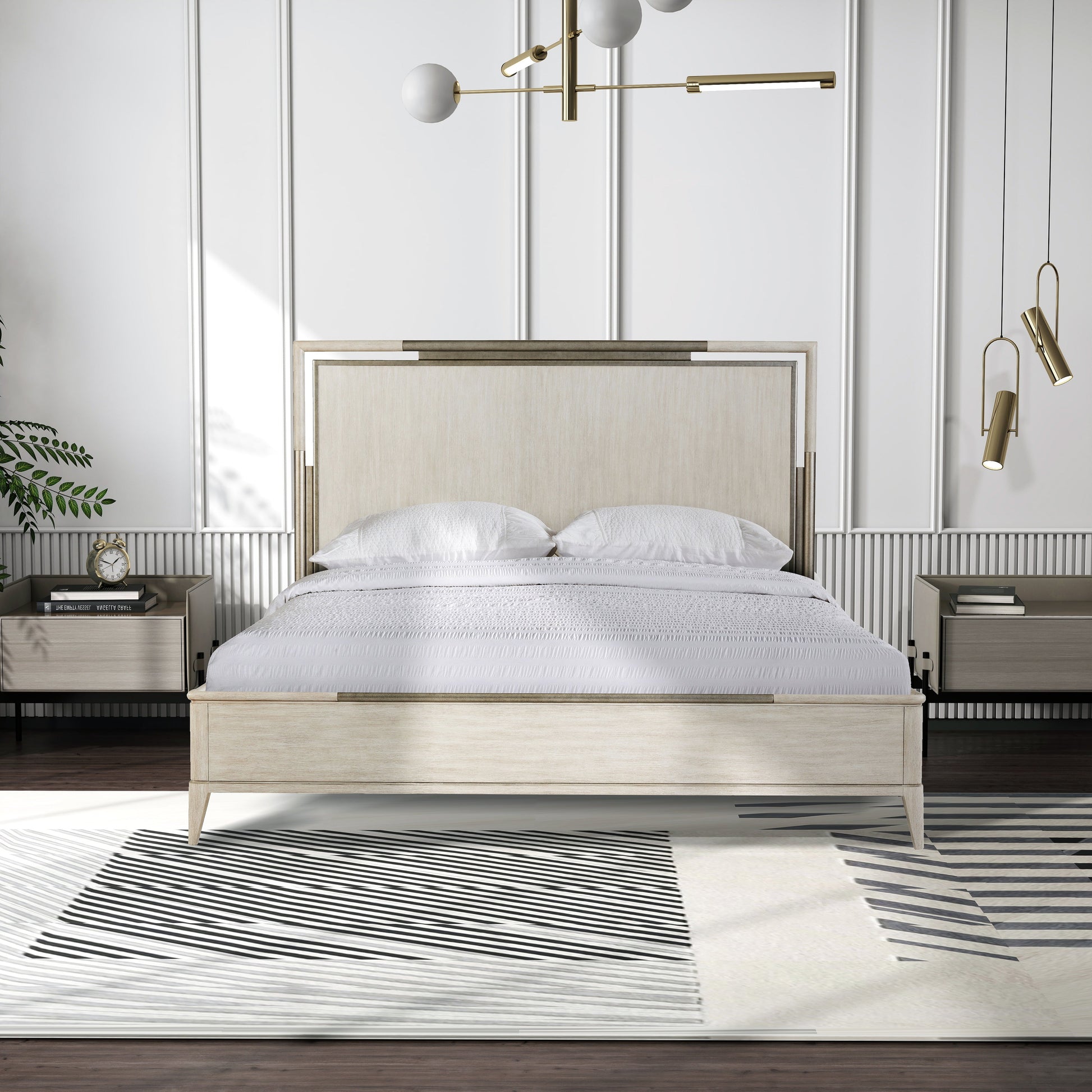 Mantalia Solid Wood Panel Bed with Metal Frame, Champagne