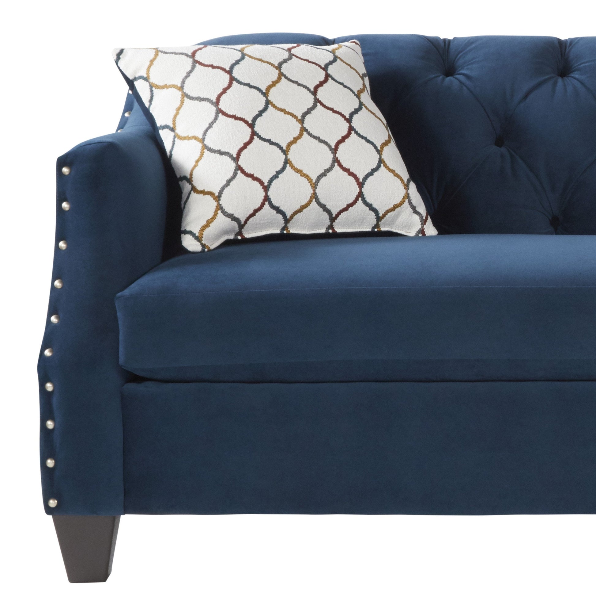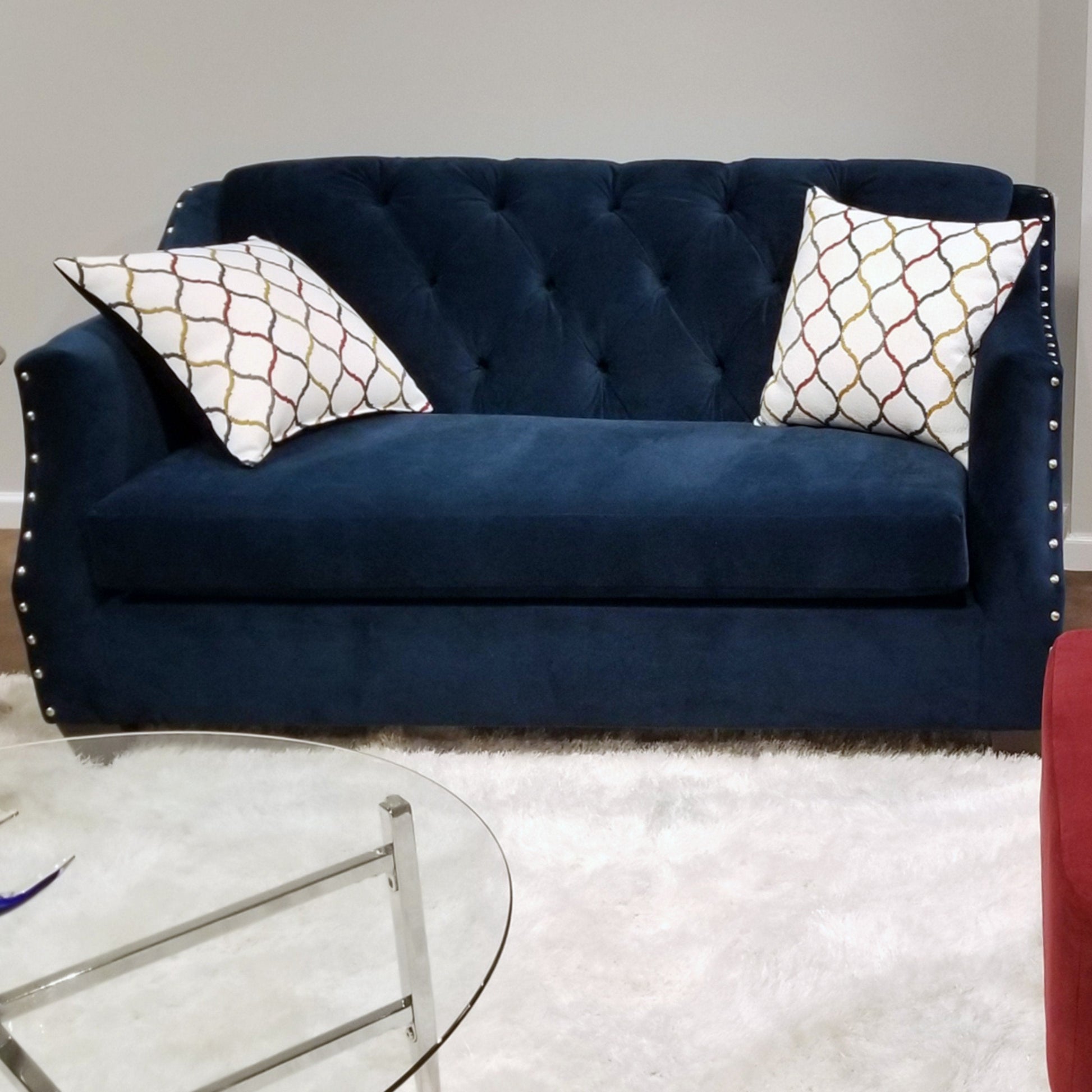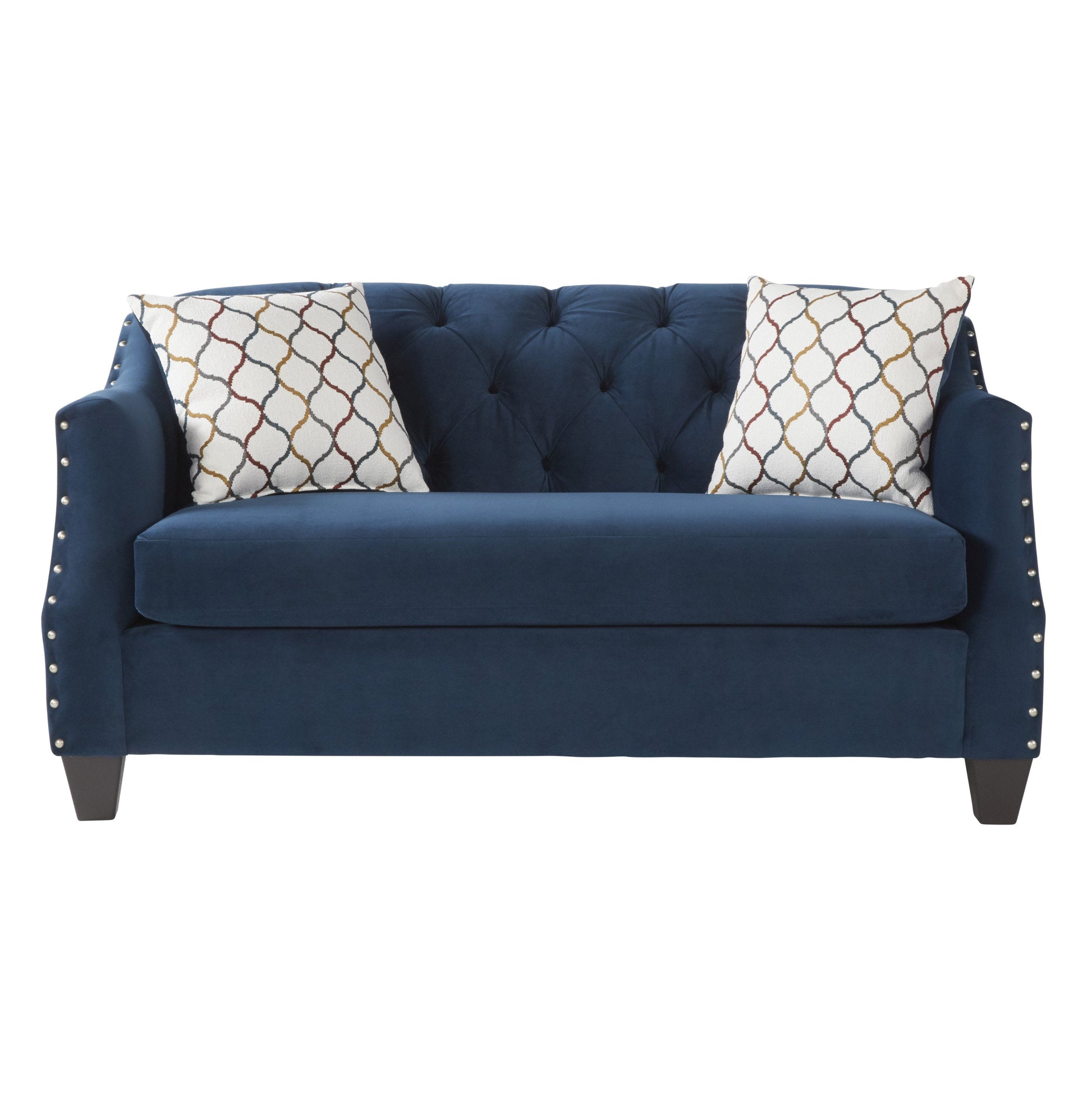 Moselle Transitional Modern Velvet Tufted Loveseat with Nainhead Trim, Blue