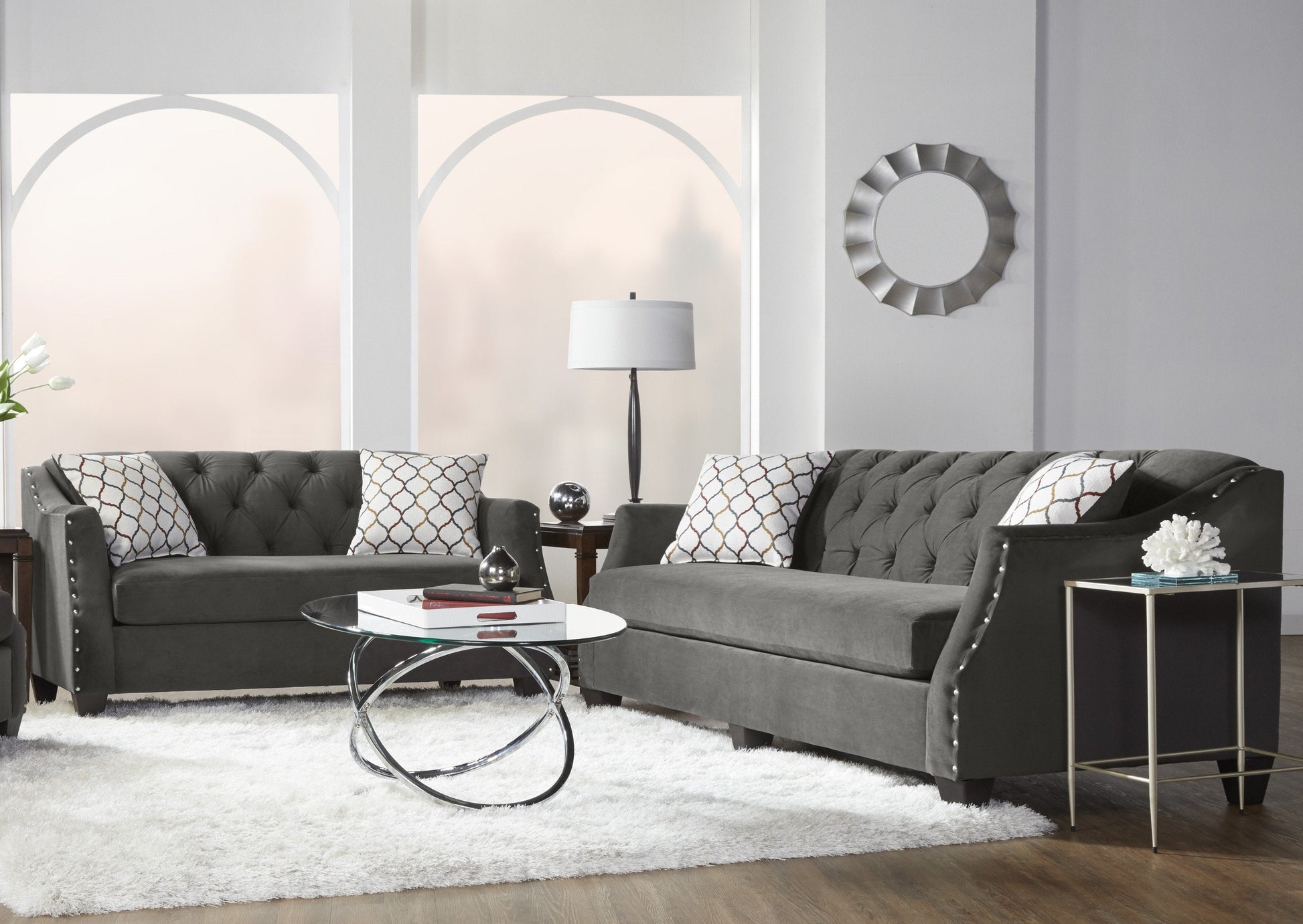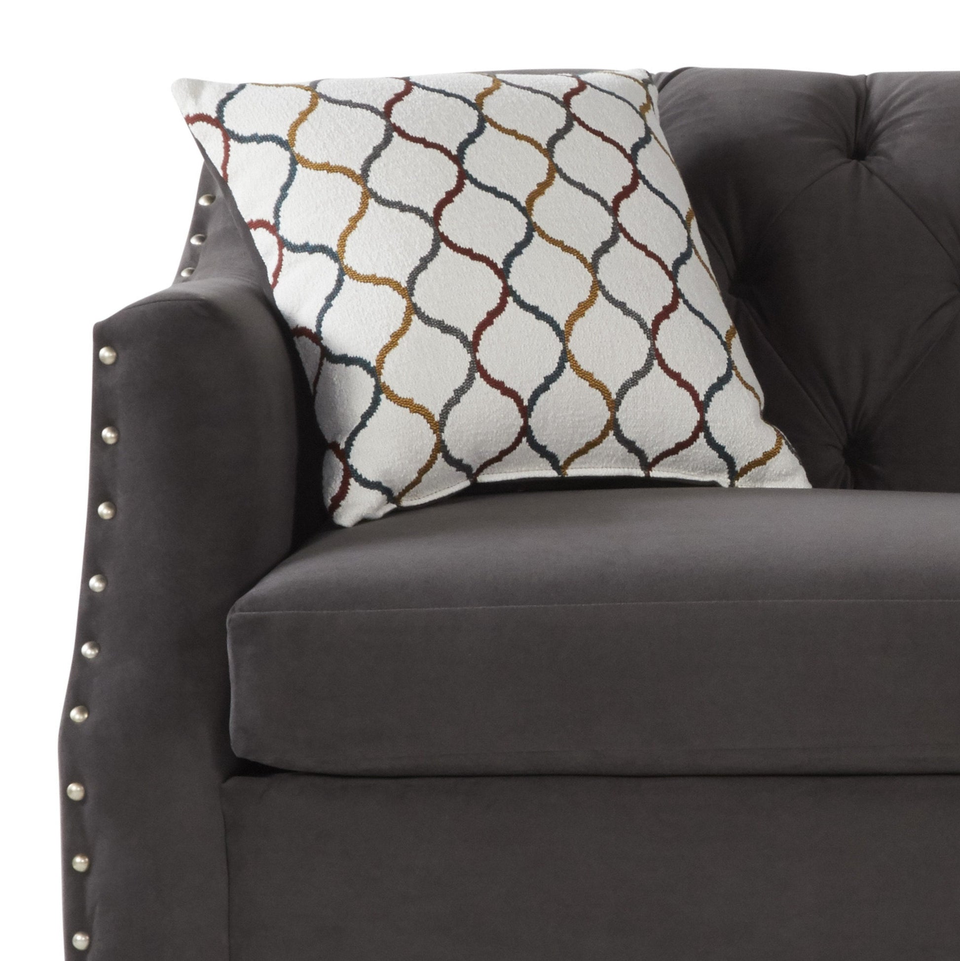 Moselle Transitional Modern Velvet Tufted Loveseat with Nainhead Trim, Gray