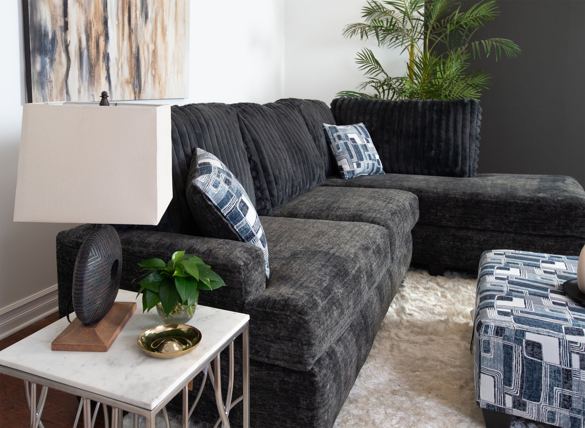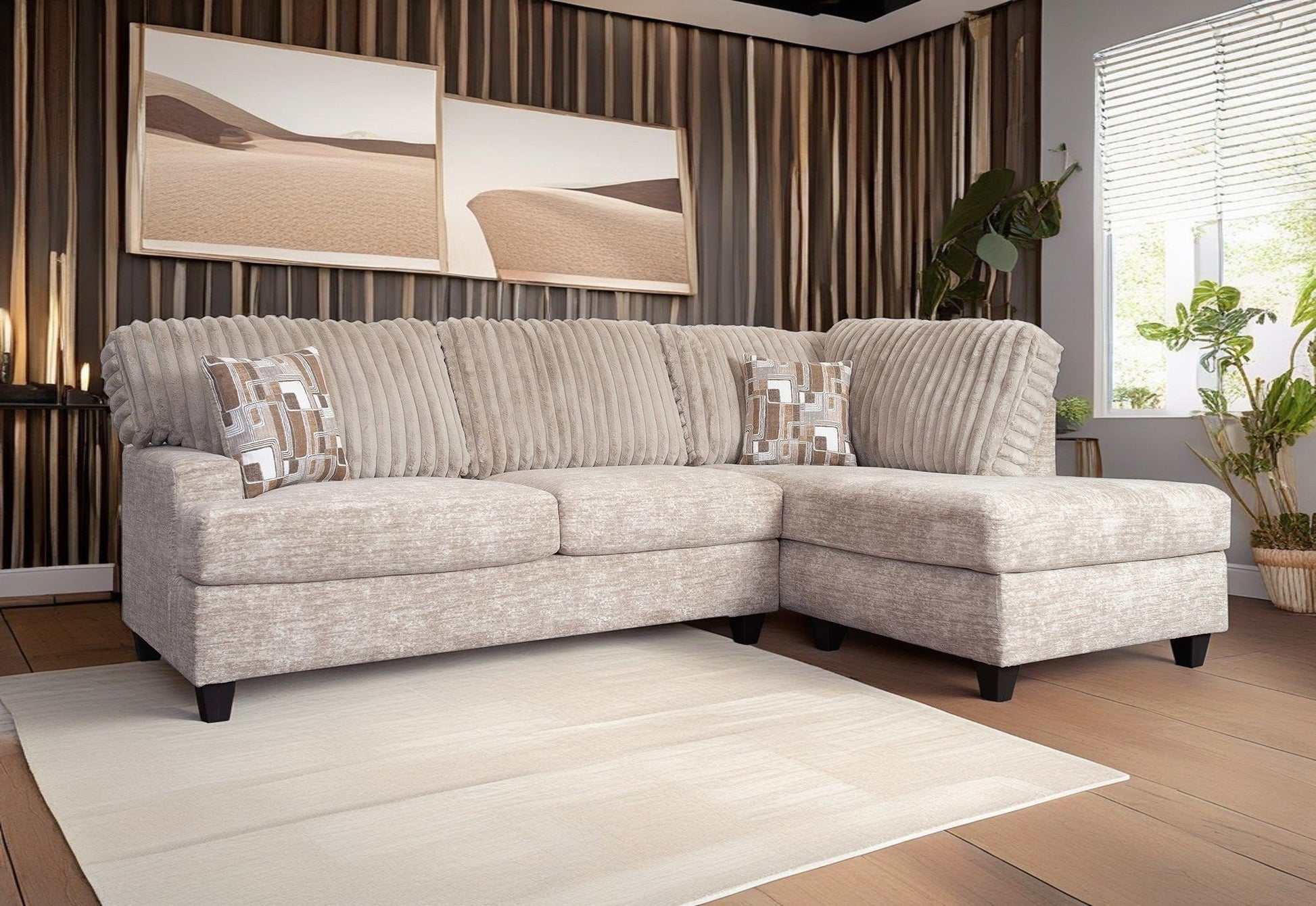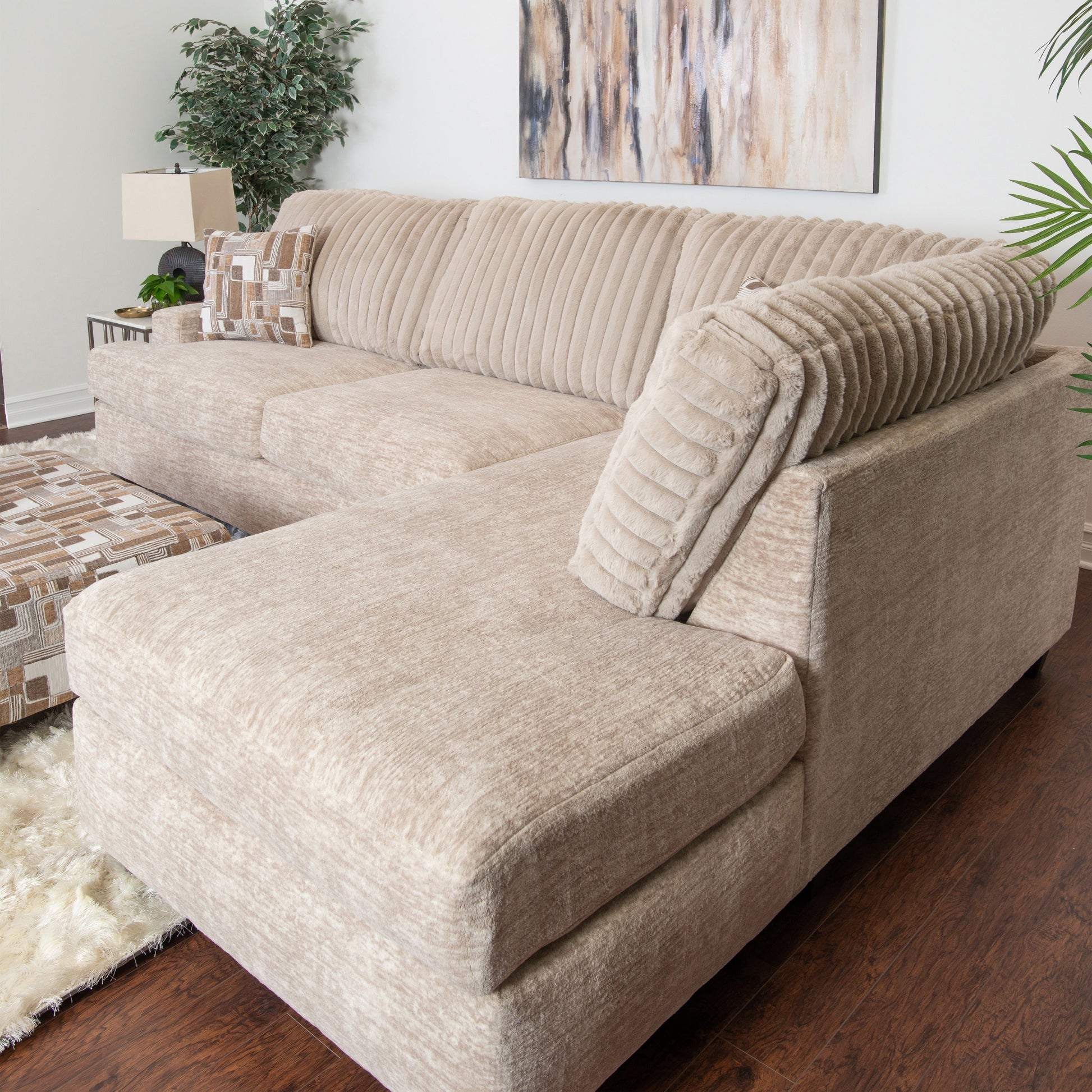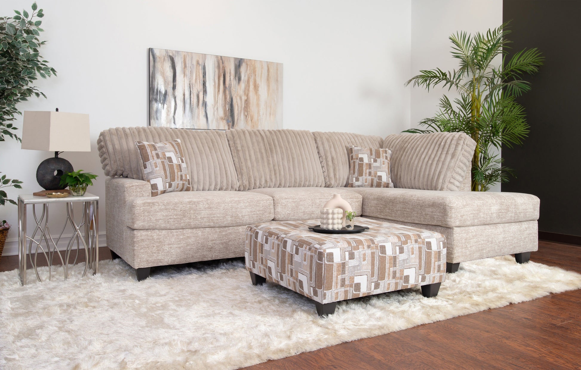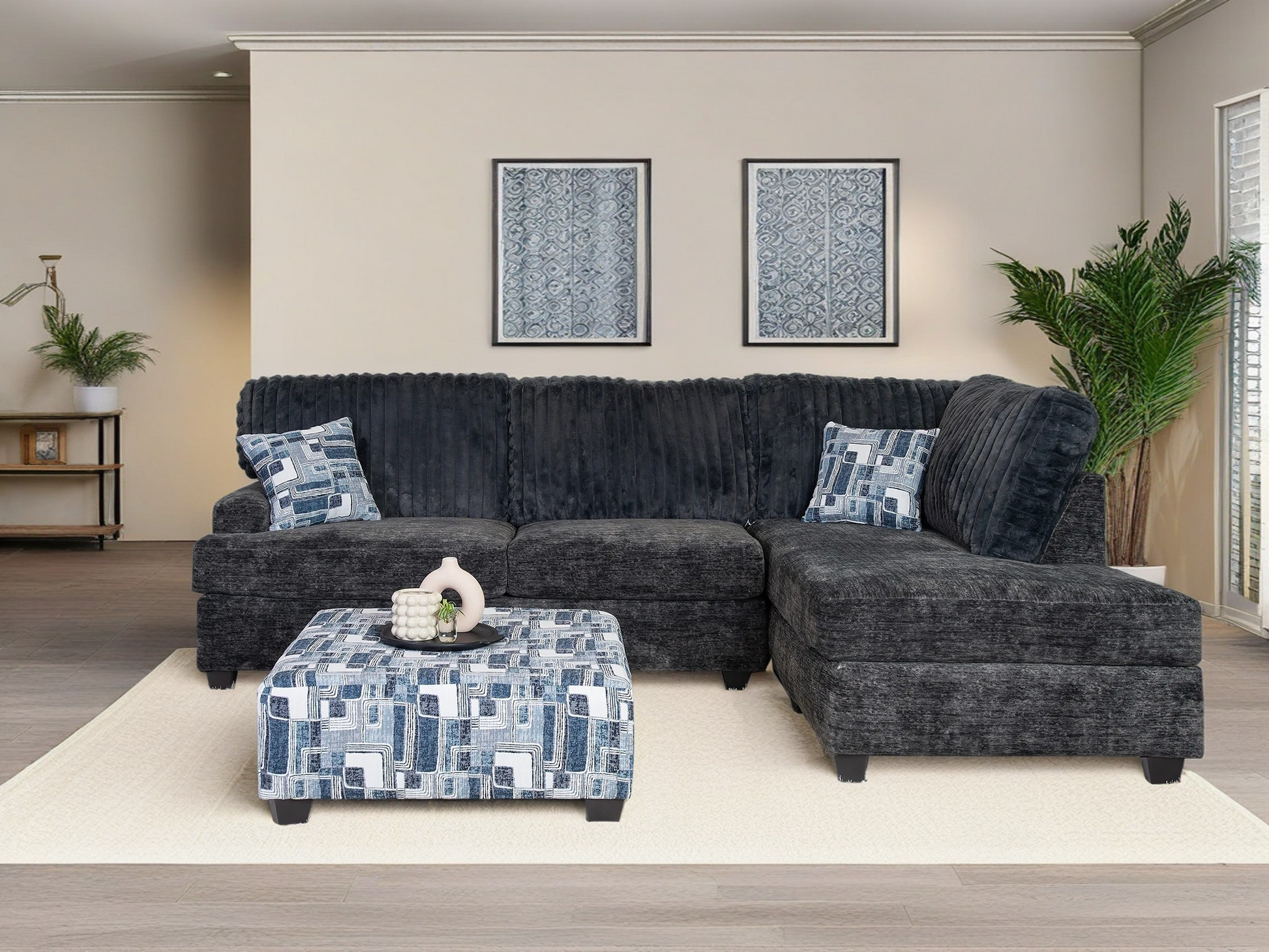 - ➤ [COMPLETE LIVING ROOM COLLECTION]: This chic collection includes a sectional and an accent ottoman. The sectional combines a 2-seat left-facing sofa with a right-facing chaise lounge in this stylish set. Accent pillows are included.