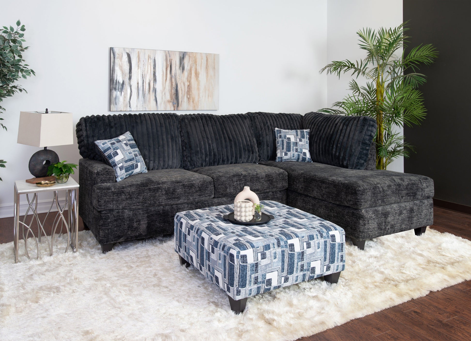 Nexus 2-PC Living Room Set, L-shape Sectional and Accent Ottoman