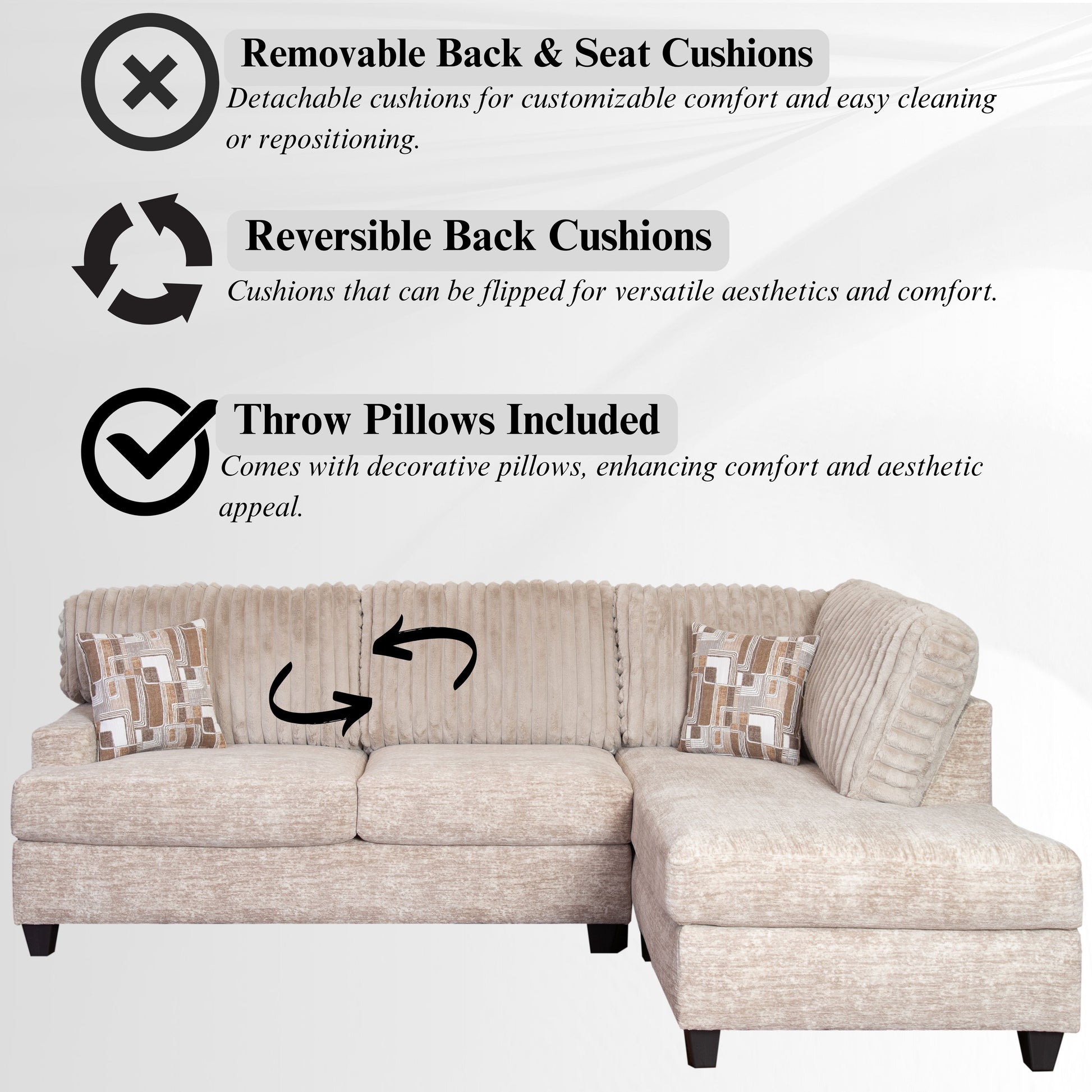 - ➤ [REVERSIBLE & REMOVABLE BACK CUSHIONS]: Notably, the reversible and removable back cushions enhance durability and maintain a fresh appearance.