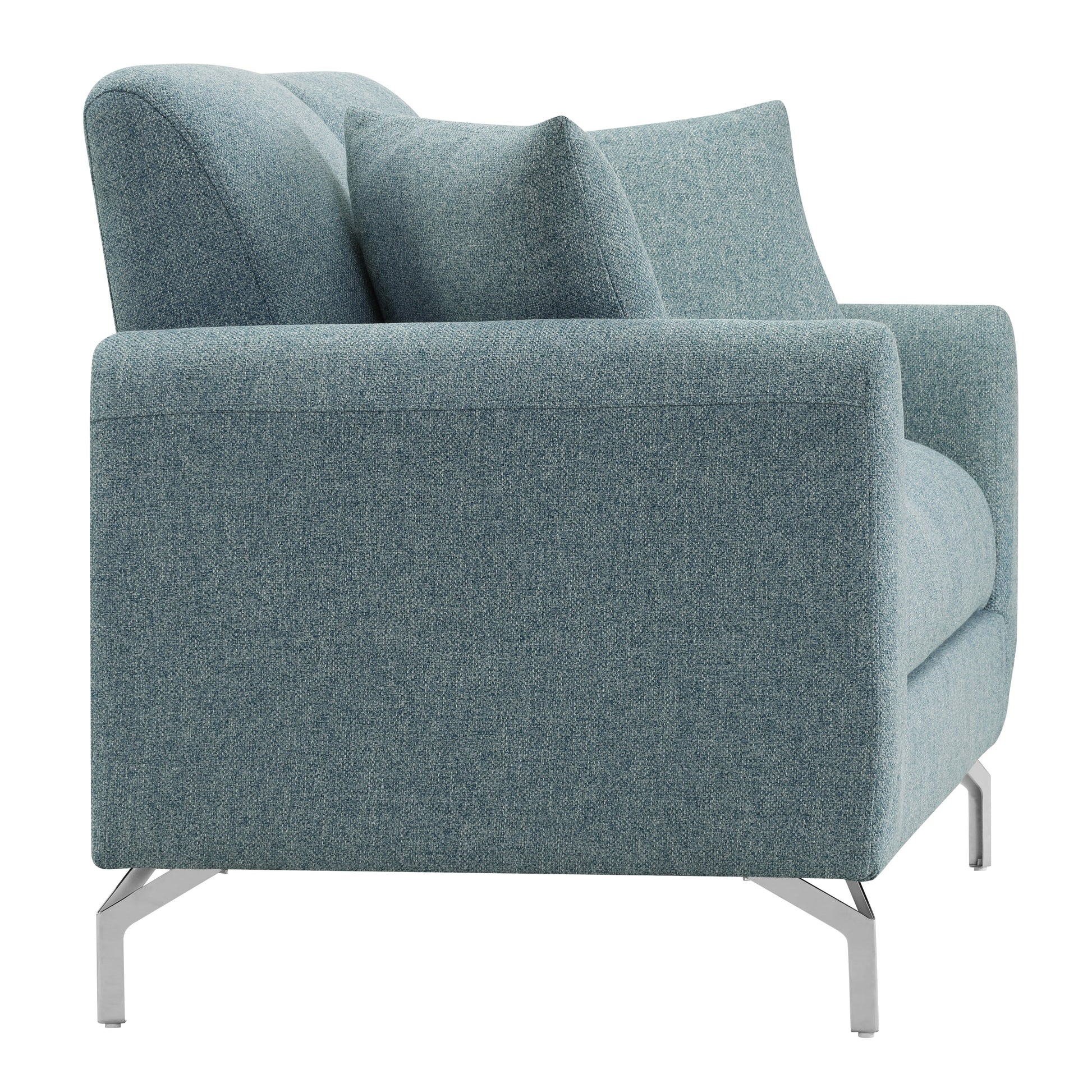 - Long-lasting and soft fabric in blue color. Minimalist, contemporary appeal with sleek metal legs and rounded armrests