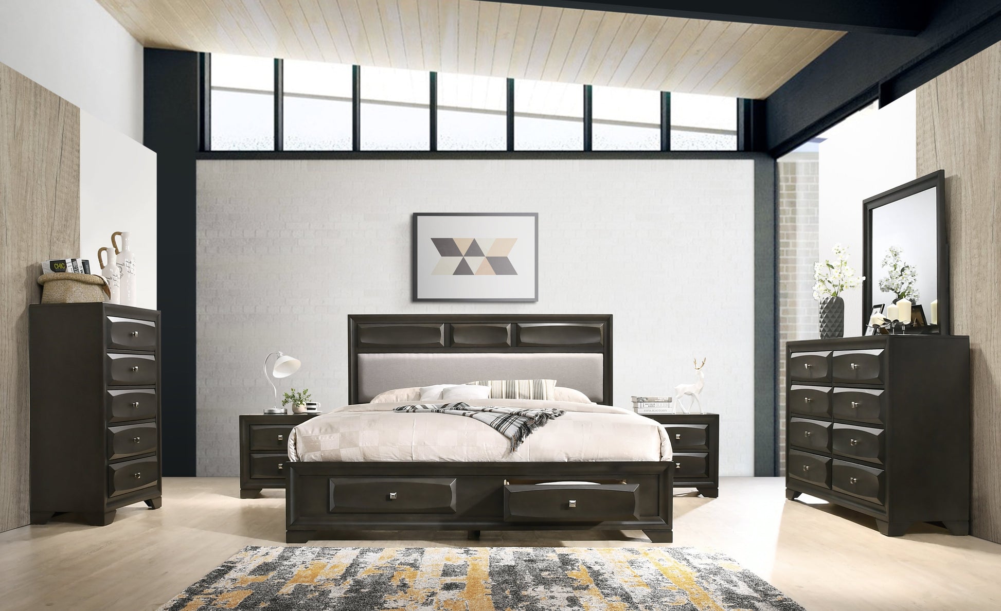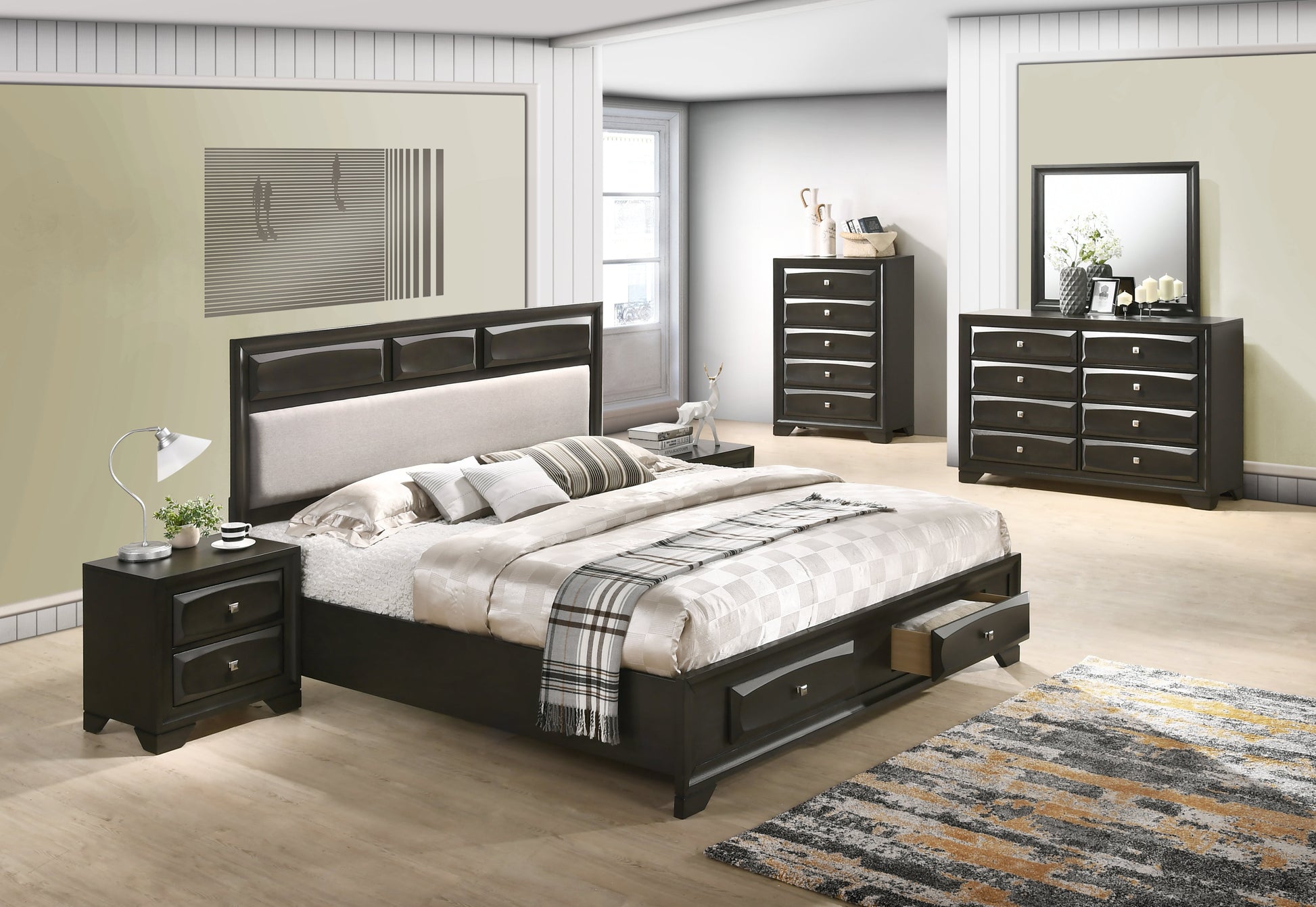 - This collection includes storage platform bed(king/queen), dresser, mirror, nightstand, and chest.