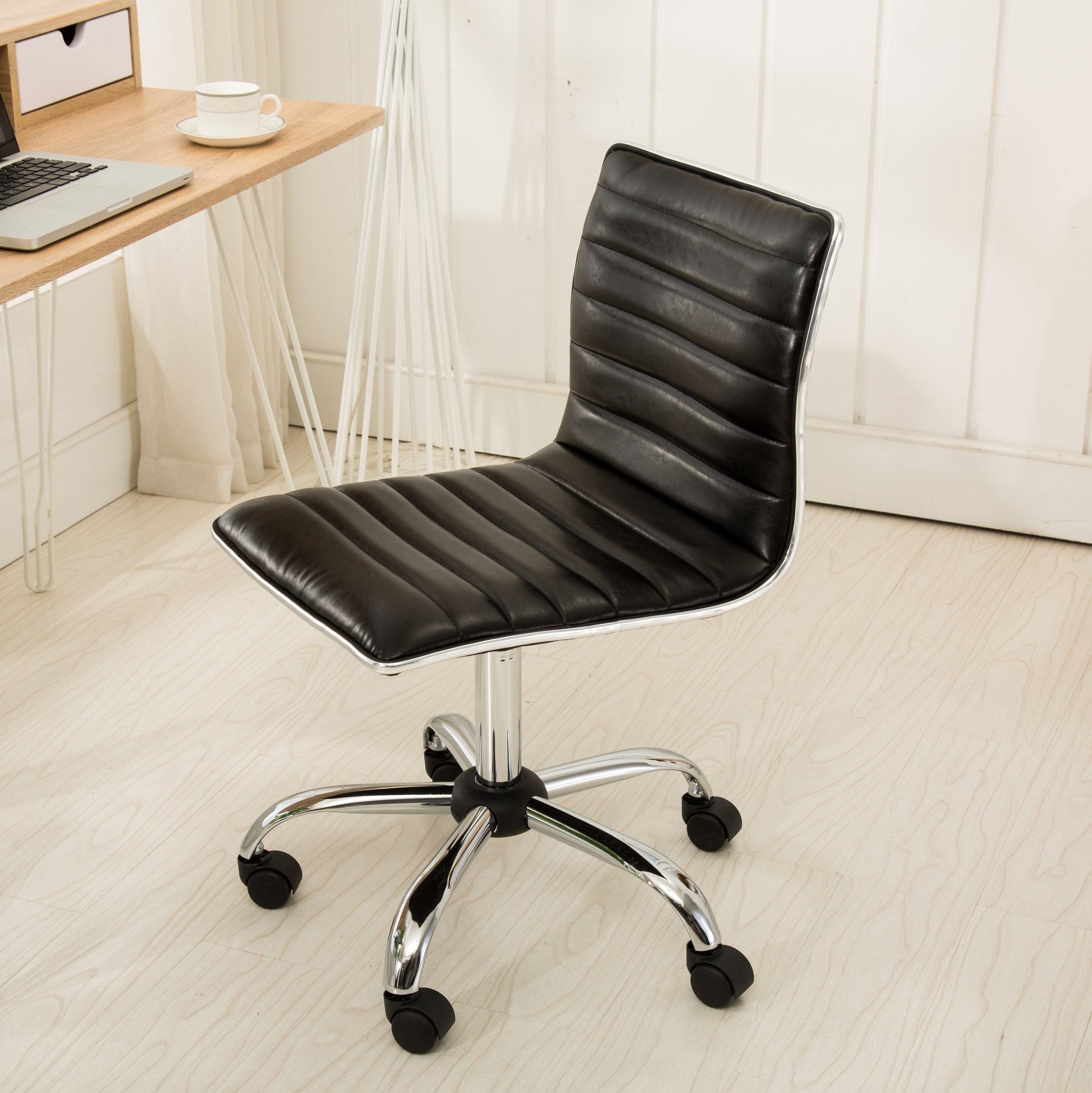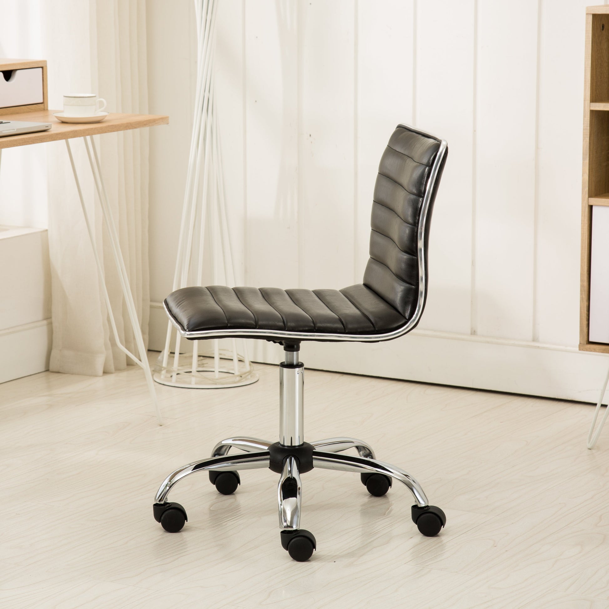 Enjoy comfort and classic office style with this Armless Mid-Back Office Chair. Will make it a pleasure to ease back in and press through your work time. You'll particularly love the tilt mechanism that helps you achieve the best position possible for your body type.