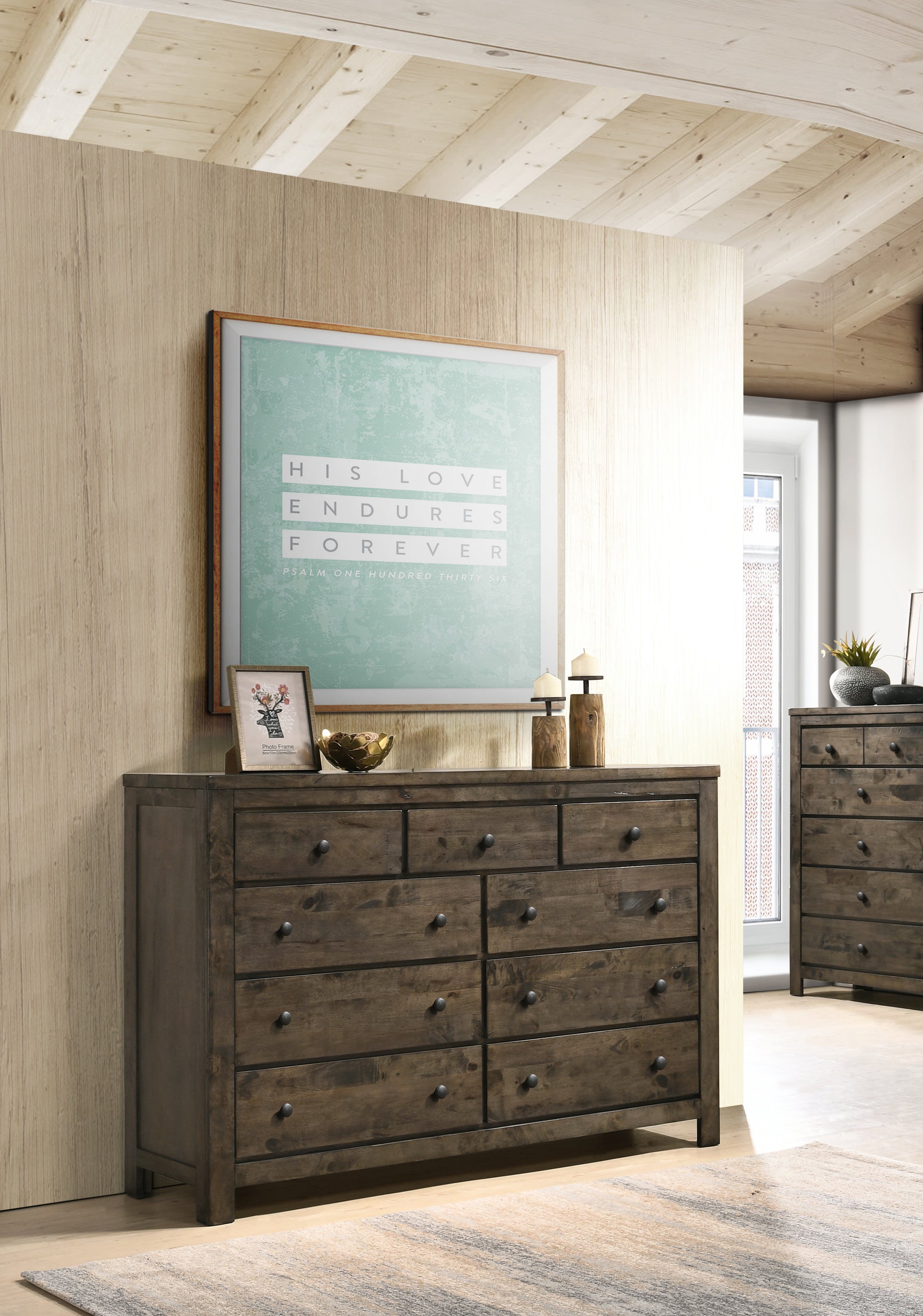 Natural wood grain with gently distressed accents for rustic appeal