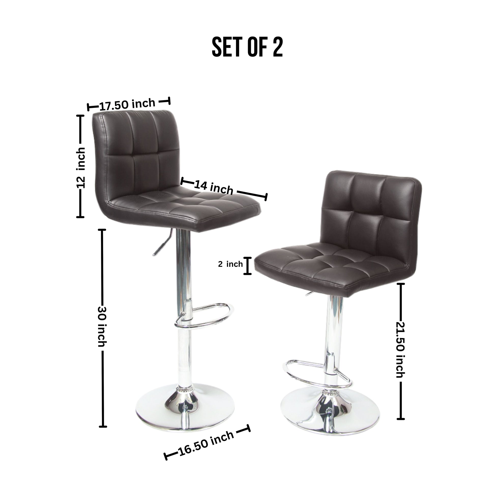 Hot, sleek and incredibly fashionable and fun, these Adjustable Swivel Stools are must have for the modern home. Set of 2 contemporary stools, PU Leather seat, air lift design for seat height of 24 to 30 Inch.