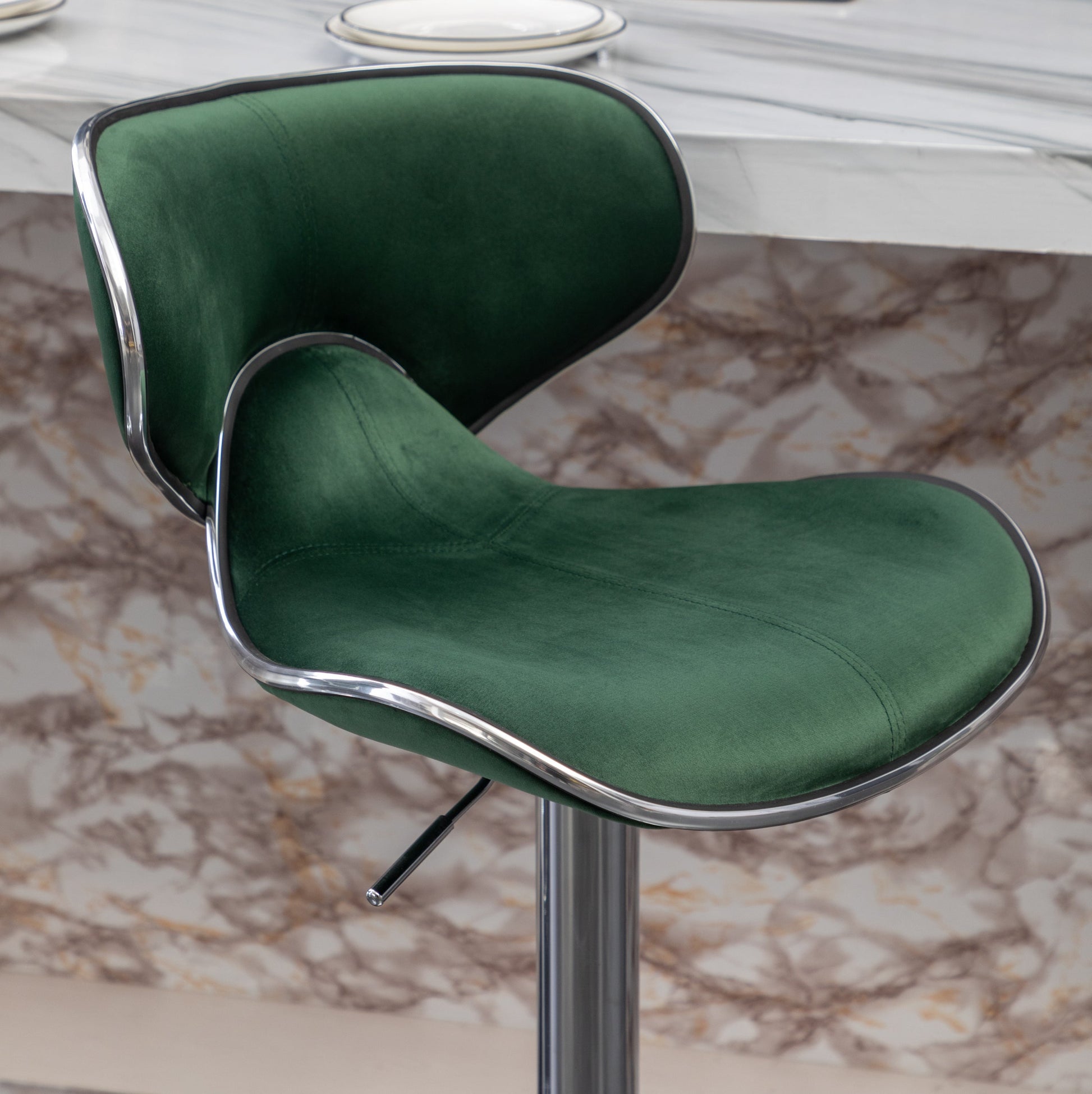 Masaccio Velvet Upholstered Adjustable Swivel Barstool, Set of 2, Green