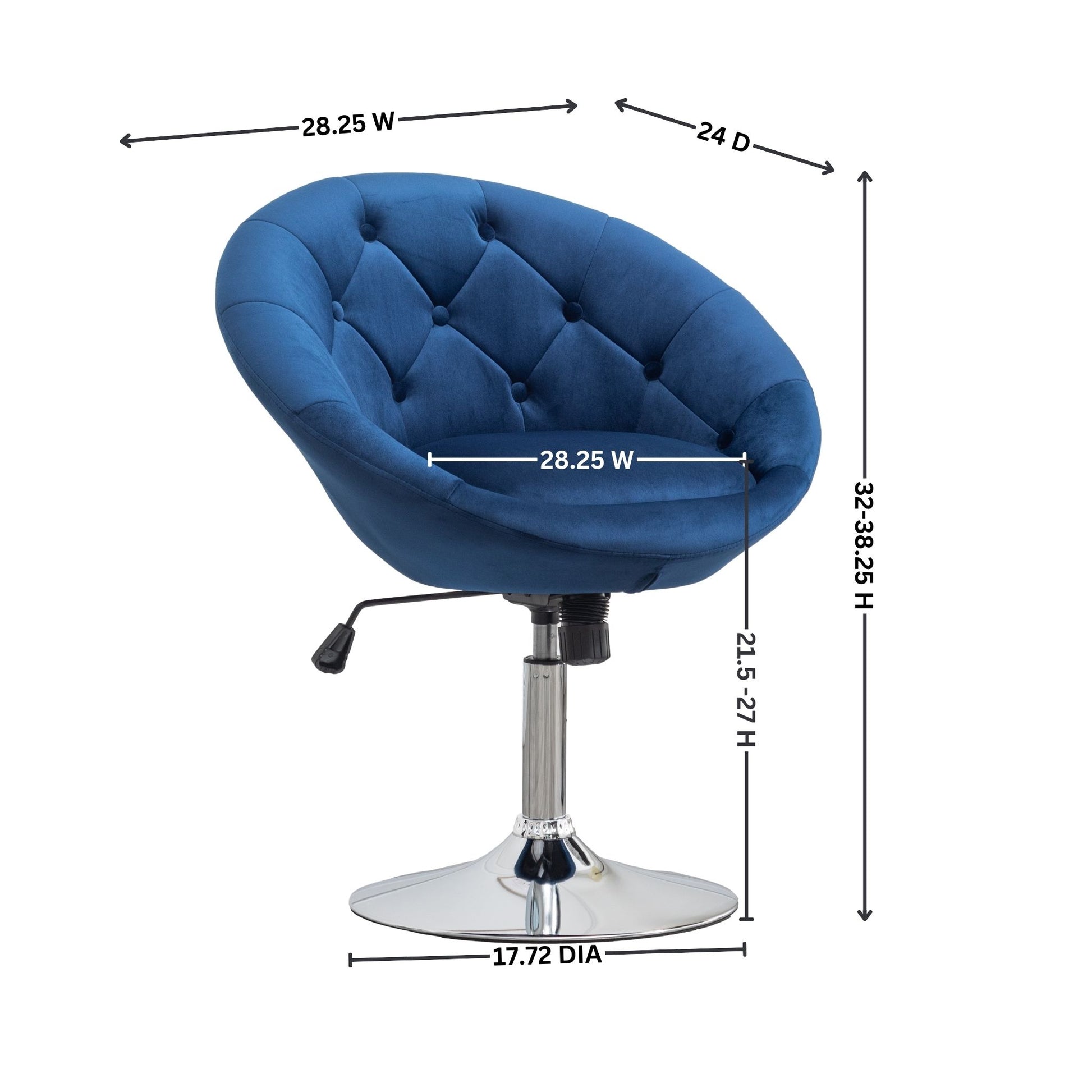 Experience lasting comfort with this barrel chair that is designed to be stylish and functional. The Noas Velvet Upholstered Tufted Back Swivel Accent Chair has a unique style that provides comfortable seating. Upholstered in soft velvet fabric, this chair comes in a variety of color options that complement most home decors. Settle into the tufted, generously stuffed seat and backrest to experience luxurious comfort while you work or entertain. The seat height adjusts to suit your preference, this chair also swivels 360 degrees.