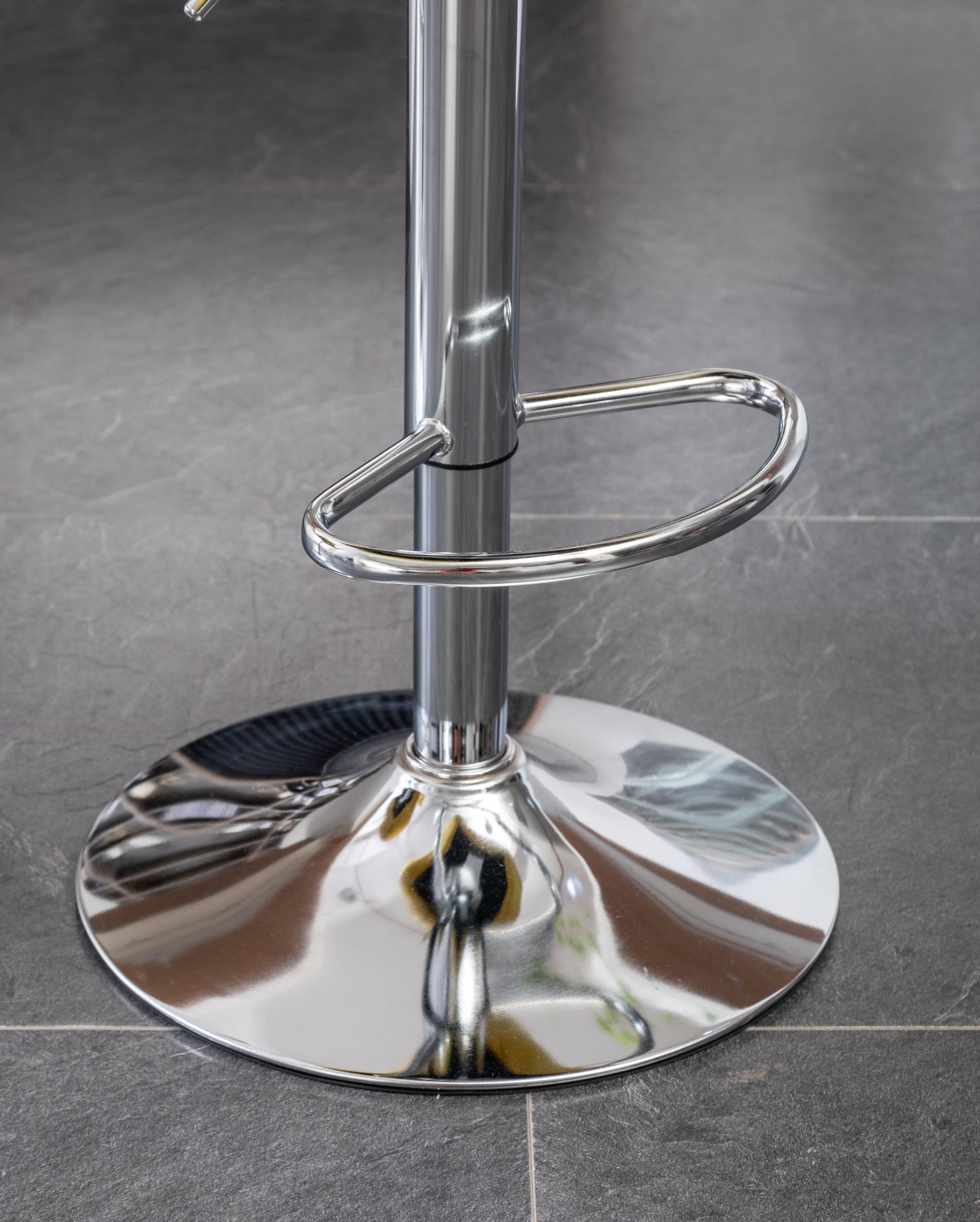 - Polished chrome disk base with built-in bar footrest