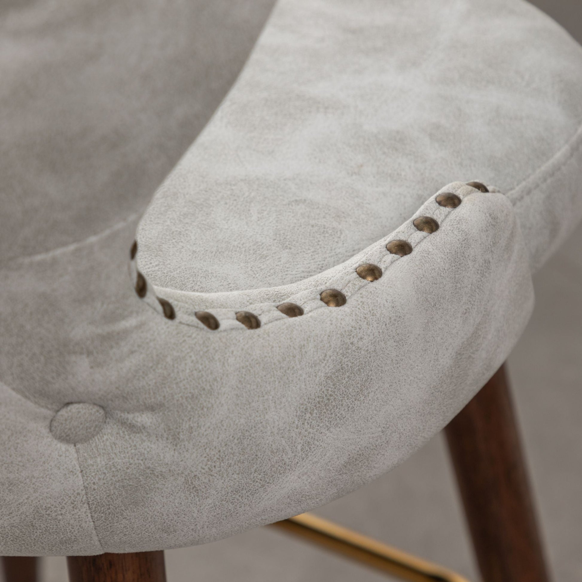 - Tapered walnut finished solid wood dowel legs with gold-finished metal footrest