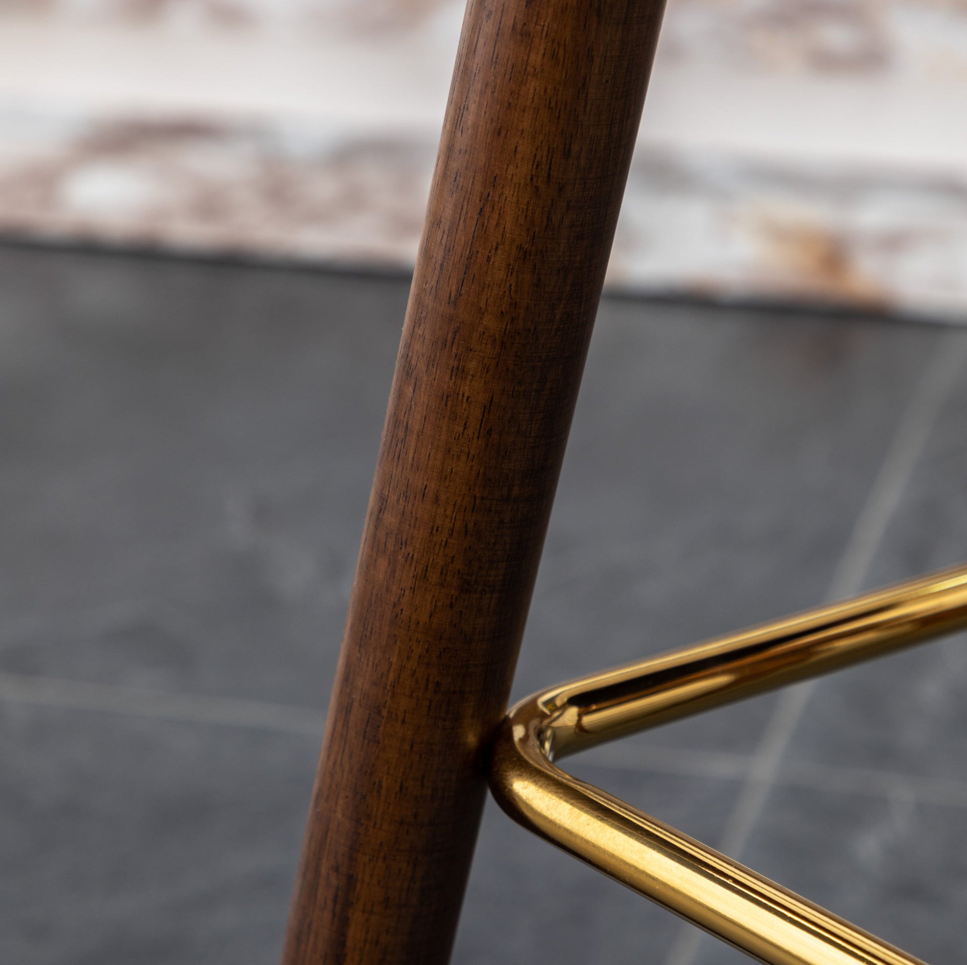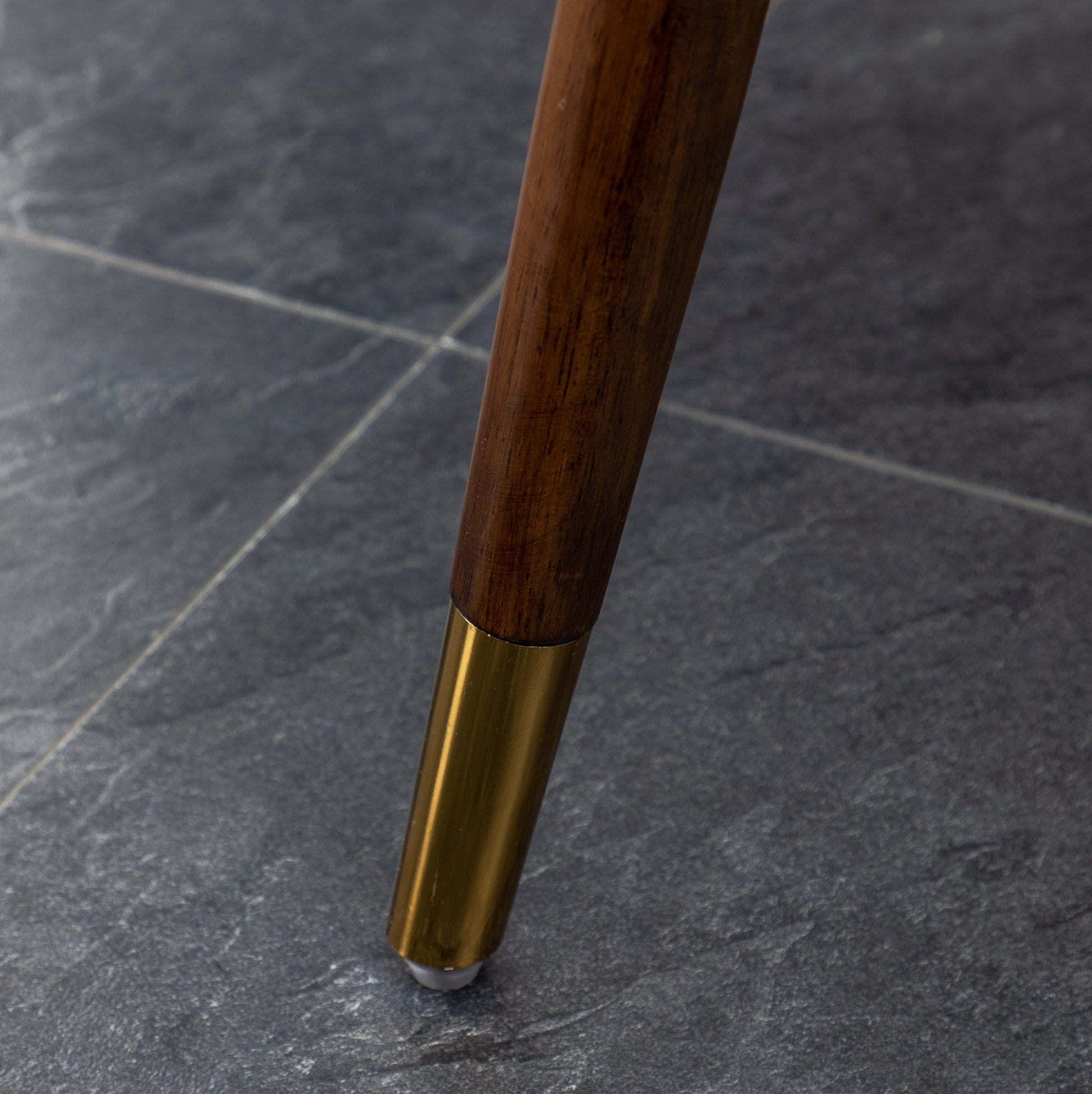 - Tapered walnut finished solid wood dowel legs with gold-finished metal footrest