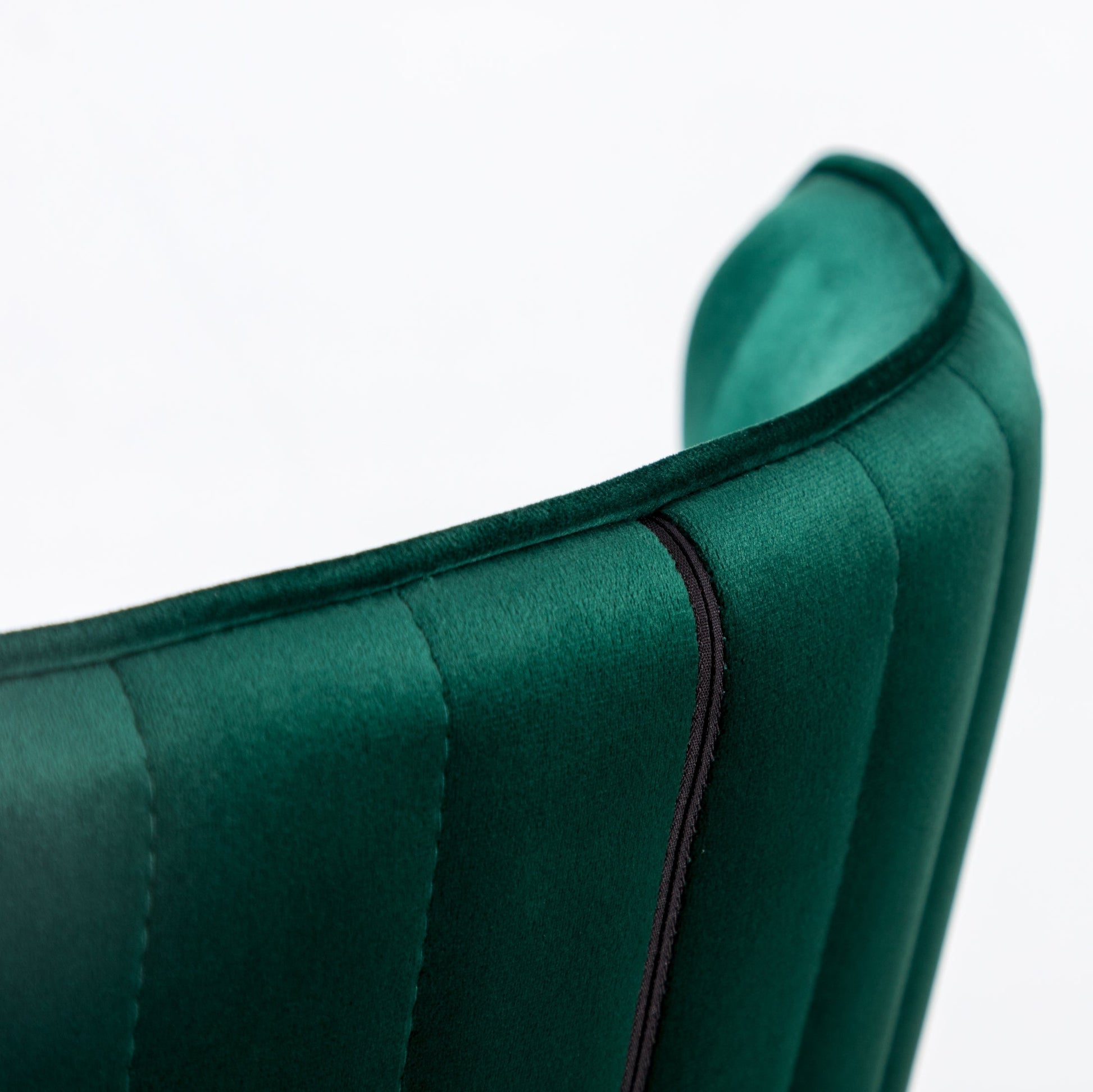 - Thick layers of dense foam are used to pad the backrest and seat, upholstered with a lush velvet-like fabric