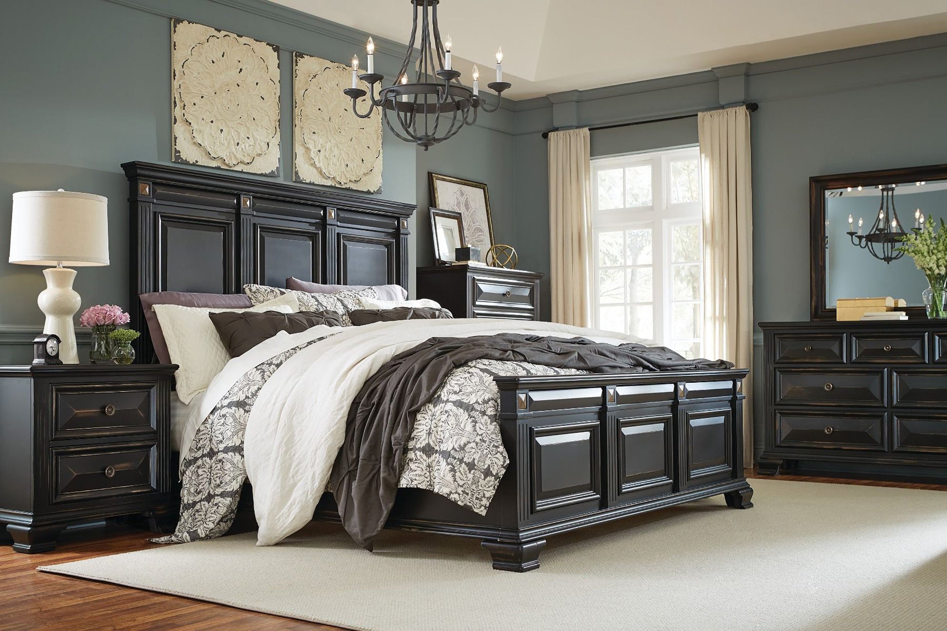 Renova Vintage Black Wood Bedroom Collection