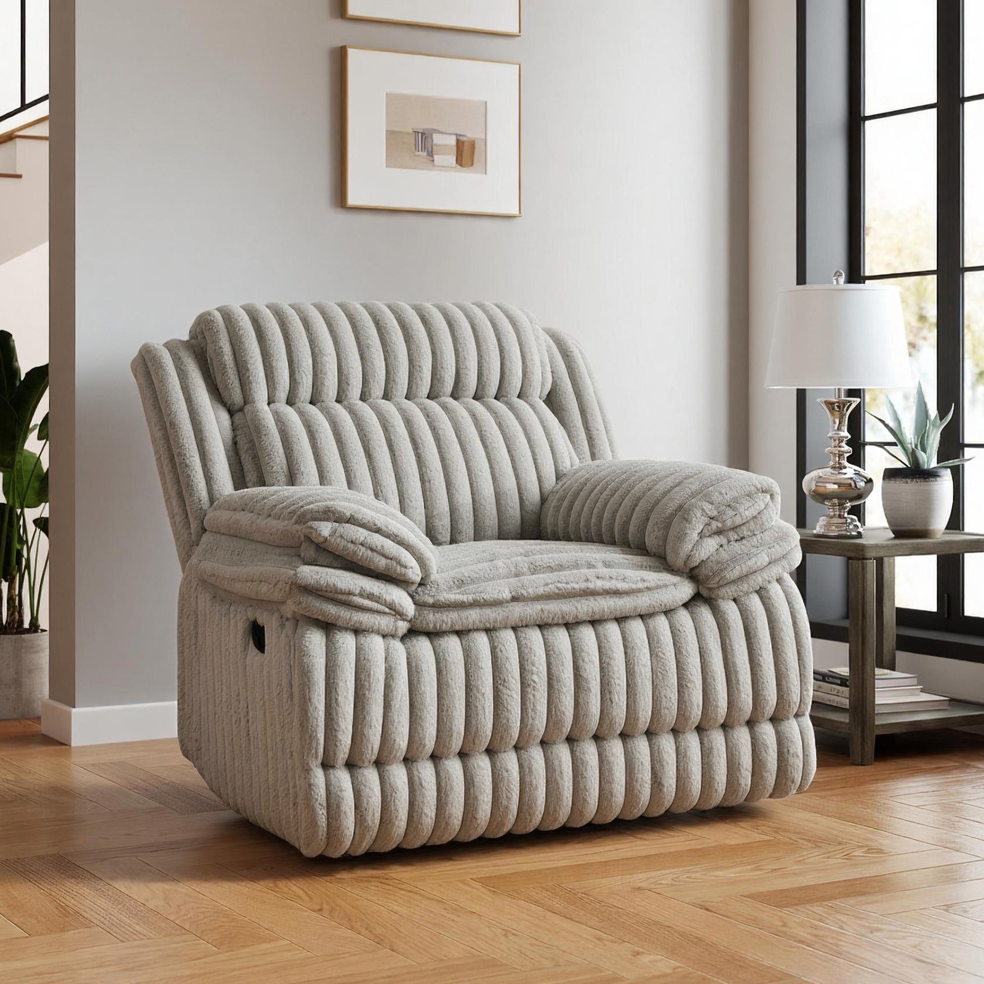 Sink into comfort with the Ardello Manual Recliner by Roundhill Furniture, where modern design meets ultimate relaxation. Upholstered in gray wide-wale corduroy, this recliner offers an irresistibly soft and cozy feel. Designed with a generously sized seat, pillow-top arms, and premium foam cushioning supported by coil springs, it provides a plush, cloud-like seating experience. The smooth manual reclining mechanism lets you kick back with ease, making it the perfect spot to unwind after a long day or enjoy a weekend movie marathon.