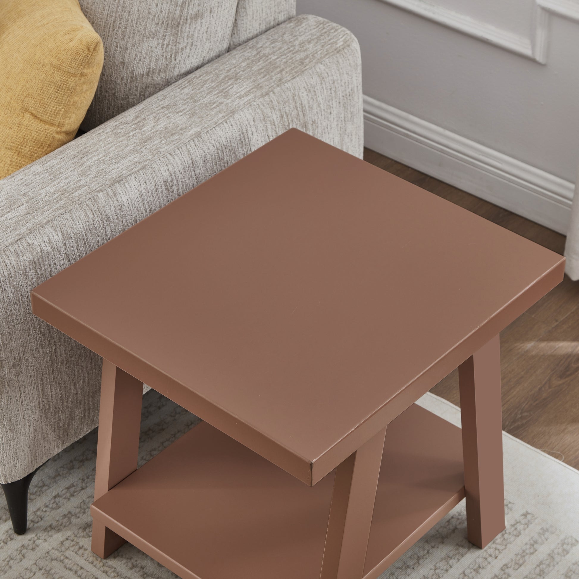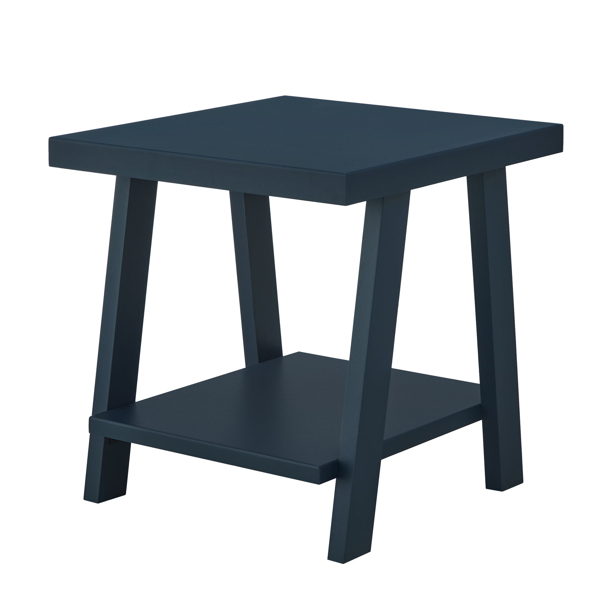 The Athens Contemporary Wood Shelf End Table provides your room with a lodge-style feel that's at once stunning and welcoming. The compact frame of this table features wide-angled legs in your choice of finish. The bottom shelf is perfect for storing magazines and newspapers or displaying your favorite collectibles. Inspired by sawhorses and the simplicity of some craftsman-era tables, this end table fits with rustic or contemporary styles.