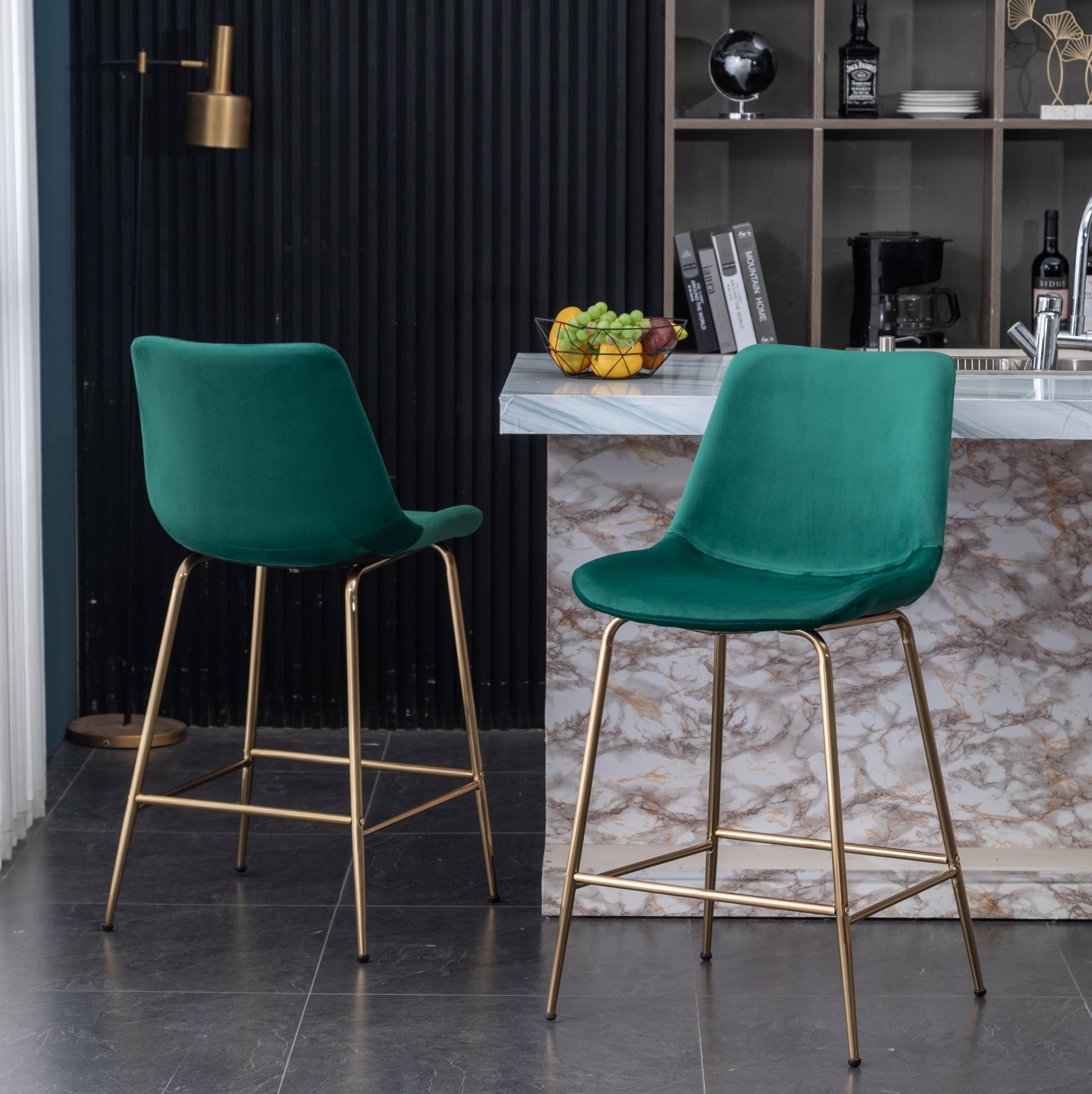 Roundhill Furniture Aufurr Modern Velvet 26.50 Counter Height Stool, Green, Set of 2