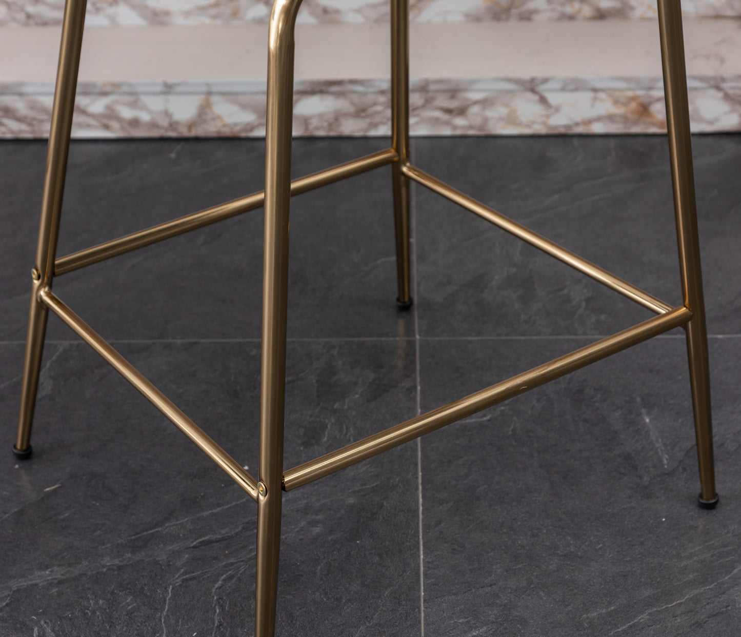 This Counter Height Stool from the Aufurr collection will offer both functionality and style to any interior design. Inspired by modern dining decorate, this set is redefined by its durability, elegance, and comfort. The smooth velvet-wrapped seat and well-padded backrest are paired with the timeless gold-plated Legs for optimal comfort and great support, four stretcher footrests offer durability, and the floor protector available underneath will protect your floor from scratching and scuffing. Without a doubt! This eye-catching set will definitely make your dining space the central gathering area for your family and friends so they will spend quality time together and make great memories! Available in four colors: Blue, Gold, Green, and Red.