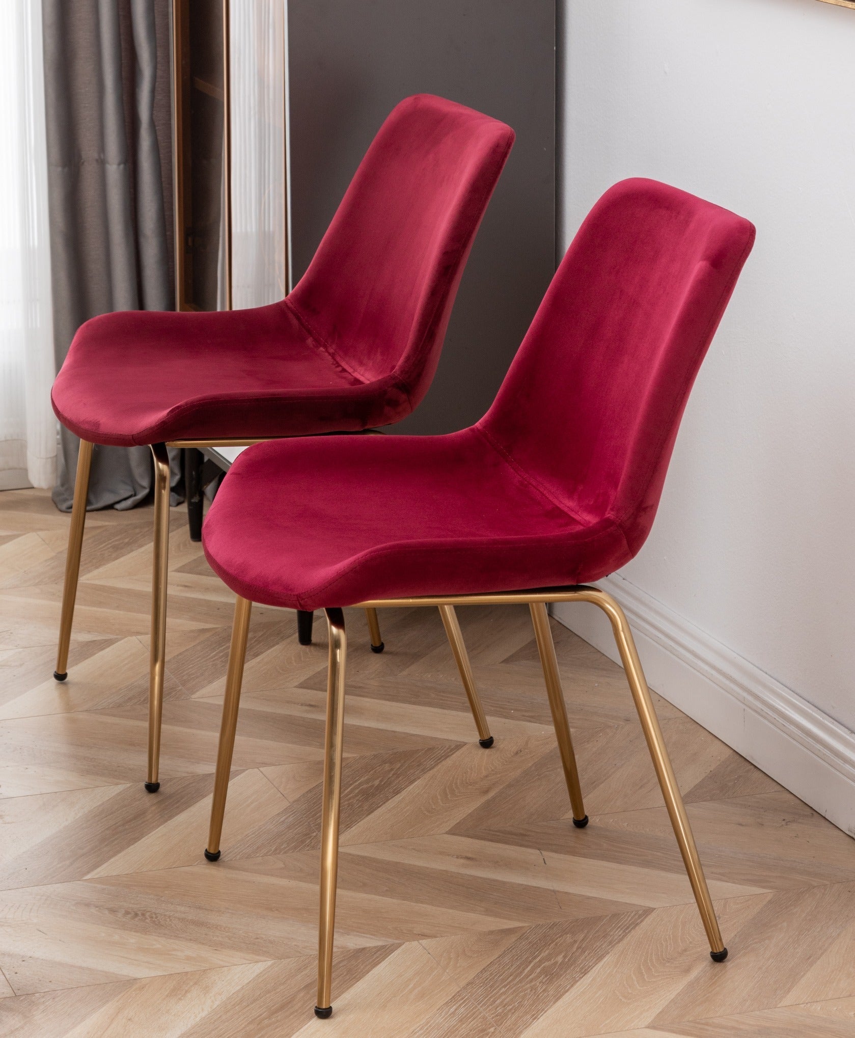 - [VELVET UPHOLSTERY]: With soft velvet upholstery, these thoughtfully designed chairs offer a unique look and smooth feel. The chairs come with dense foam cushions for ultimate comfort