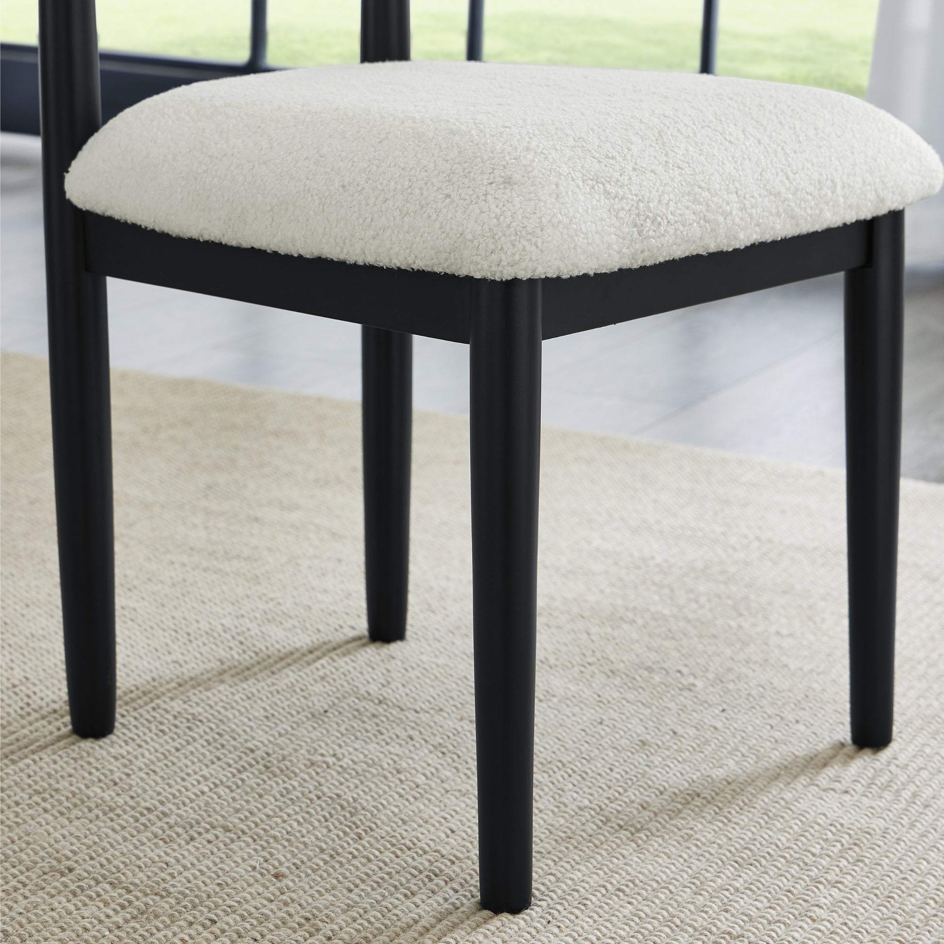 - Comfortable Modern Chairs – Includes four matching chairs featuring supportive curves and plush off-white boucle upholstery for a soft, stylish seating experience.