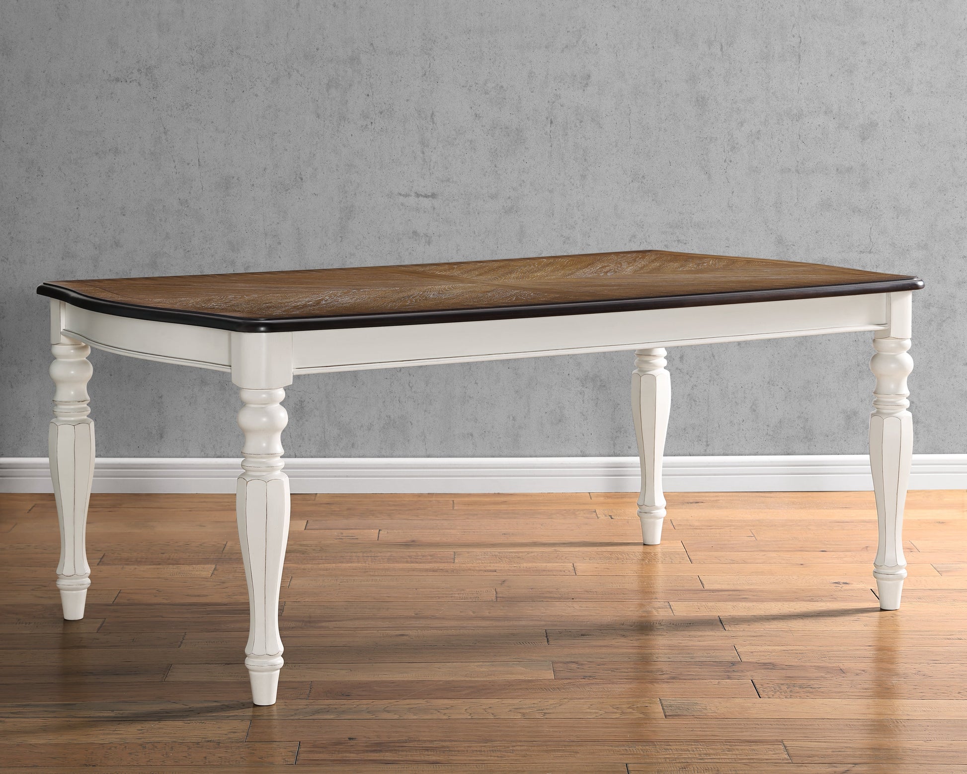 Roundhill Furniture Belleza French Country Dining Table, Antique White and Weathered Oak Finish