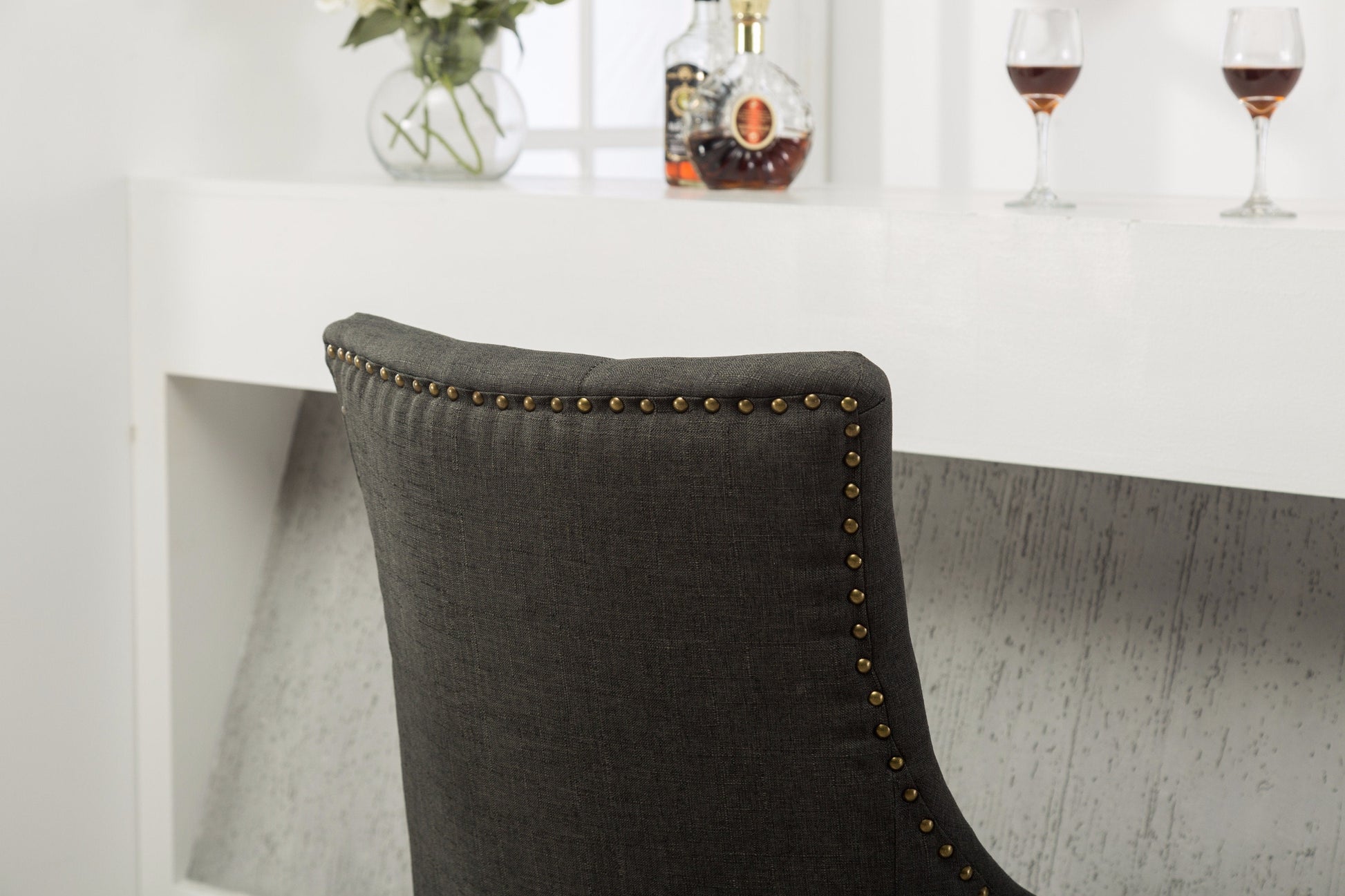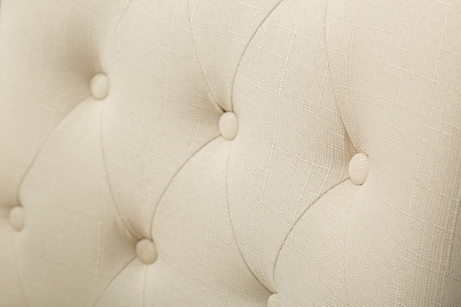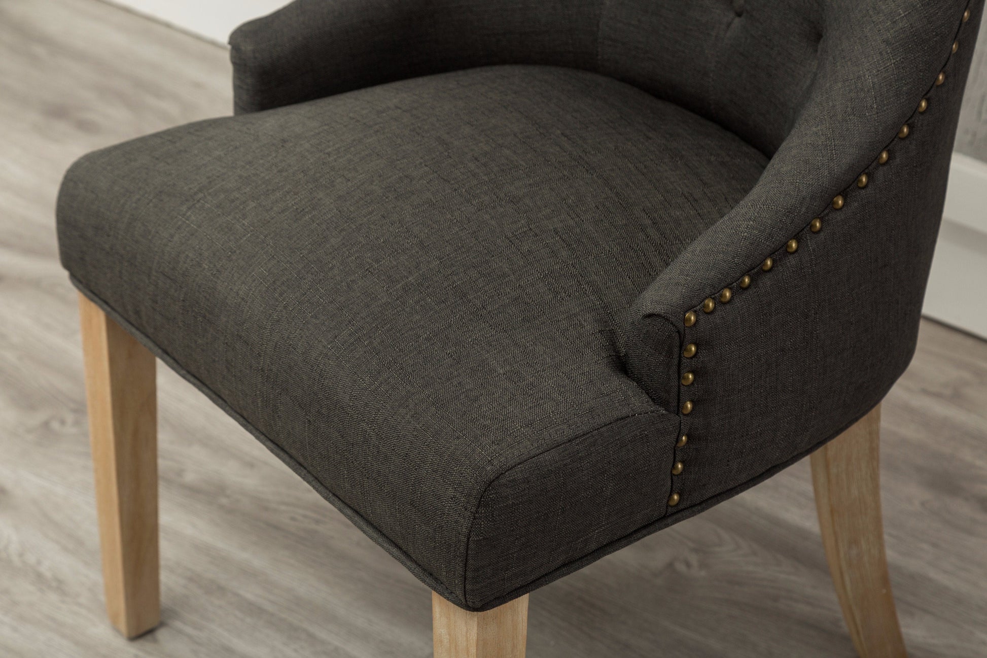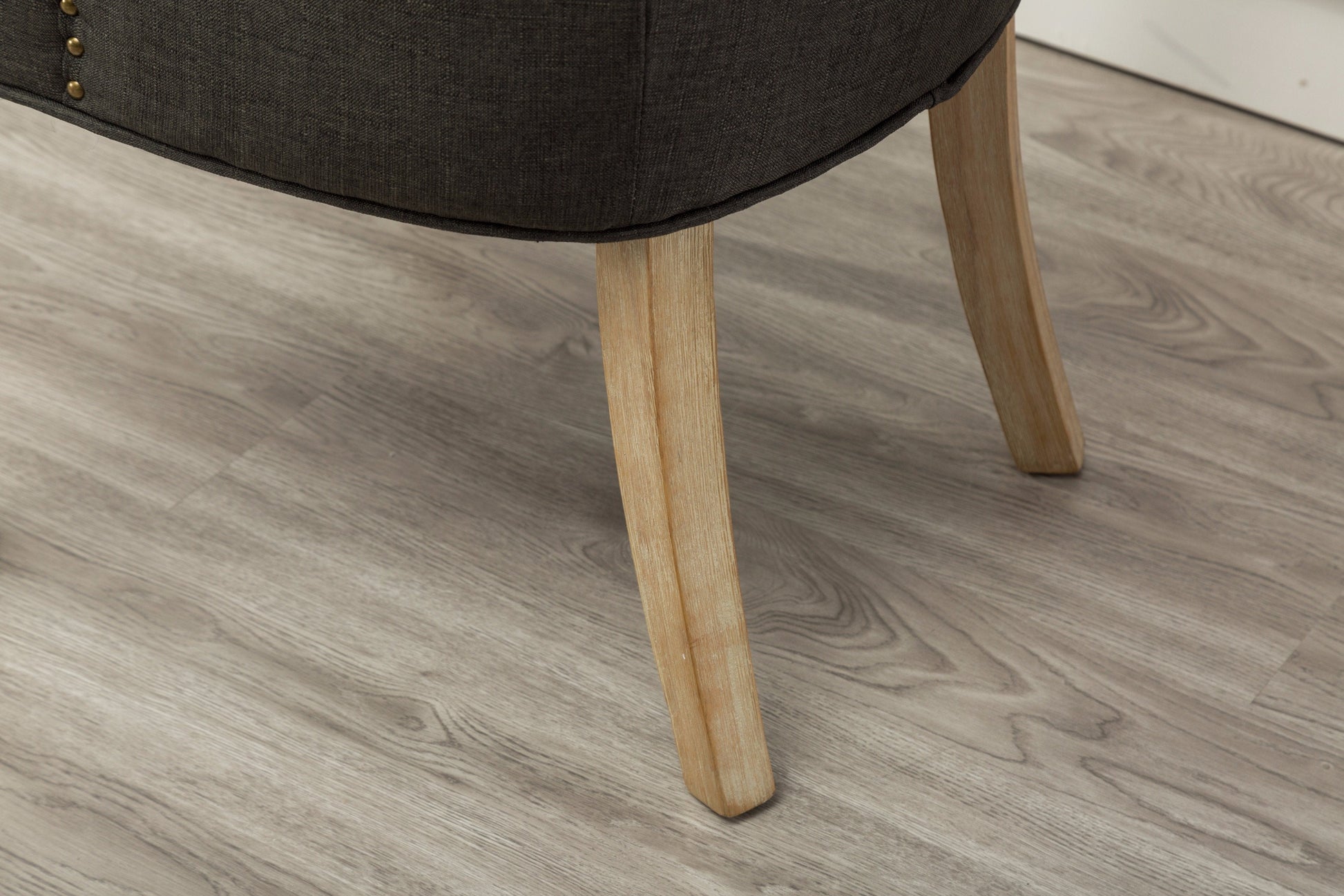 Give your dining room a touch of rustic elegance with these linen-look upholstered dining chairs. Traditionally inspired details like a wingback design and button tufting give a formal air, while a natural wood grain finish, and simplified contours keep the look understated. Choose between three colors upholstery options to find your perfect style.