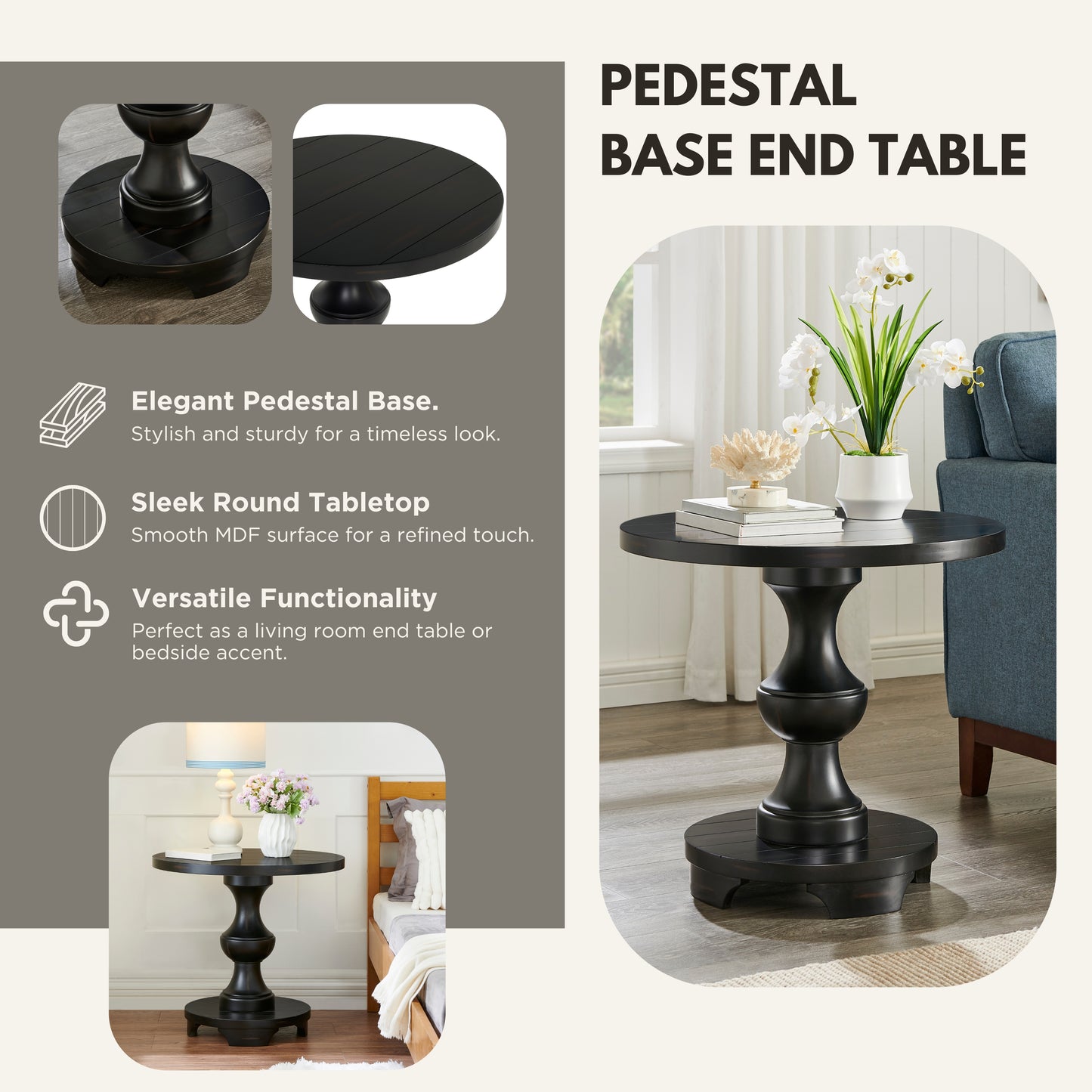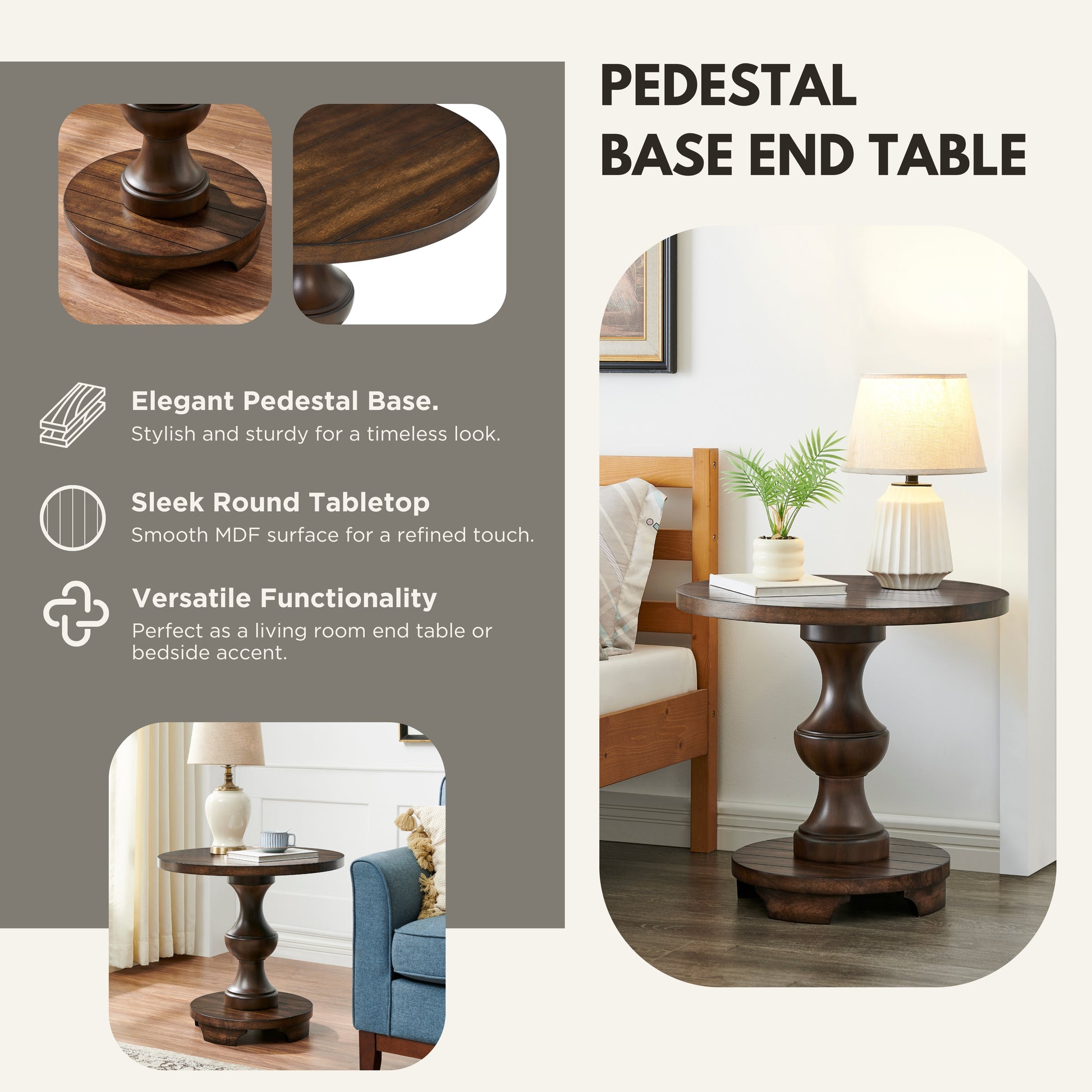 - [BUILT TO LAST]: The end table is expertly crafted and designed for durability, with attention to detail, the table is meticulously made from fine MDF, while the Pedestal base provide both aesthetic charm and enhanced stability.