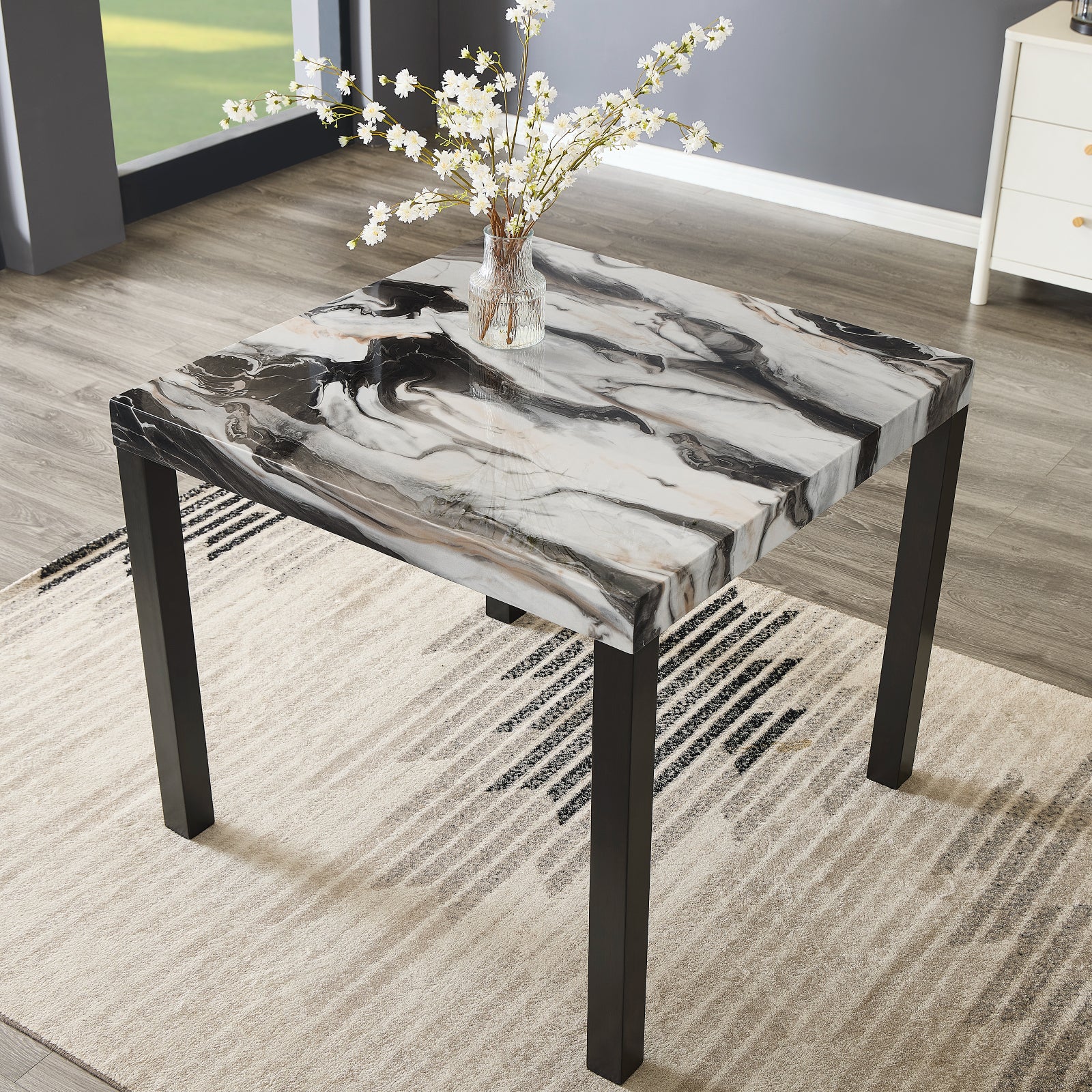 Bring sleek sophistication to your dining area with this contemporary counter-height dining table. Designed with clean lines and bold presence, the table features a striking faux marble tabletop showcasing elegant white tones with light and dark veining—delivering the refined look of natural stone with the resilience of engineered materials. The sturdy black-finished block legs offer a strong foundation while enhancing the table’s modern appeal. Whether for casual breakfasts or stylish dinner parties, this elevated table comfortably seats up to four and makes a lasting impression.