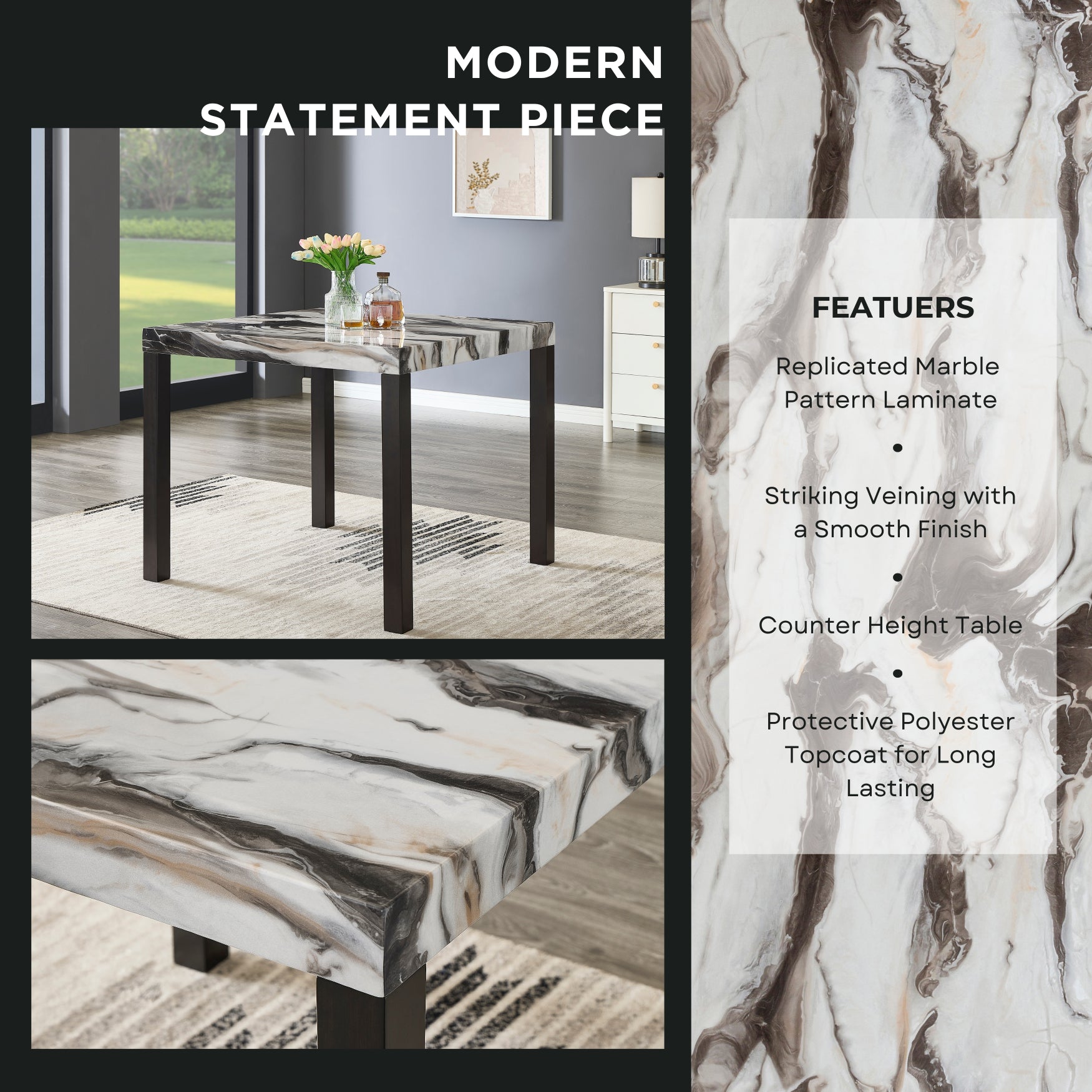 Roundhill Furniture Cavira Modern Faux Marble Counter Height Dining Table