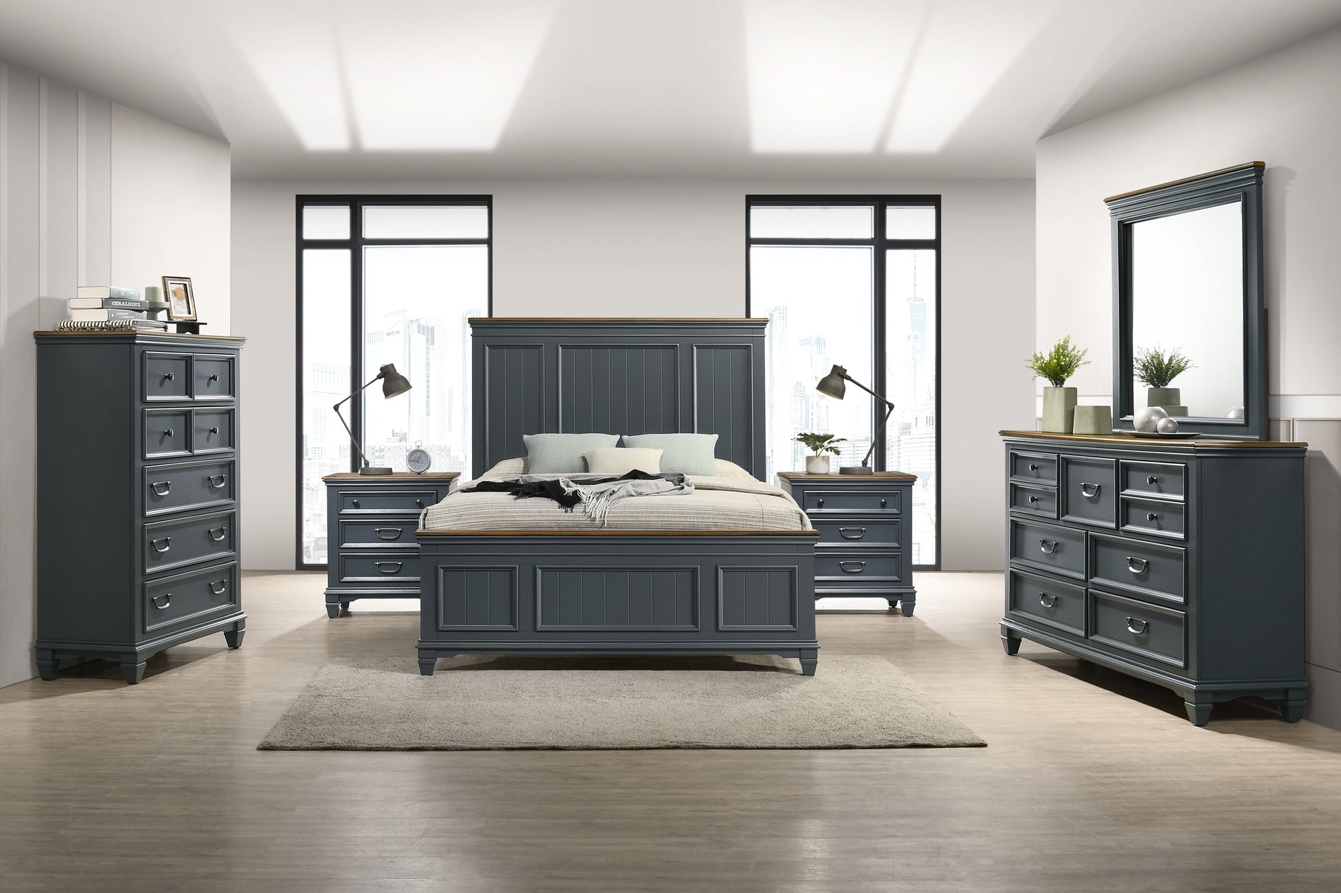 Roundhill Furniture Clelane Wood Bedroom Set with Shiplap Panel Bedroom Collection, Slate Blue