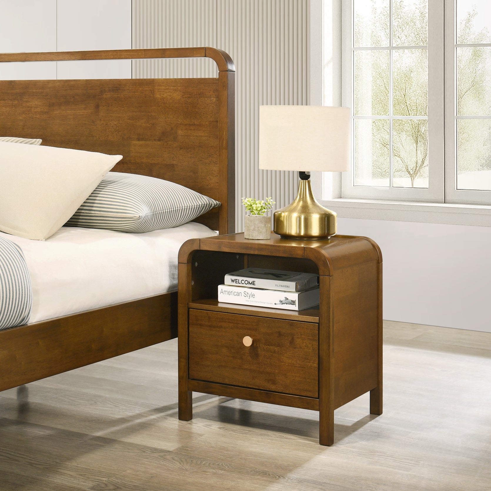 - Functional Bedside Storage – Nightstands feature drawers and open shelving to keep nighttime essentials organized and within reach.