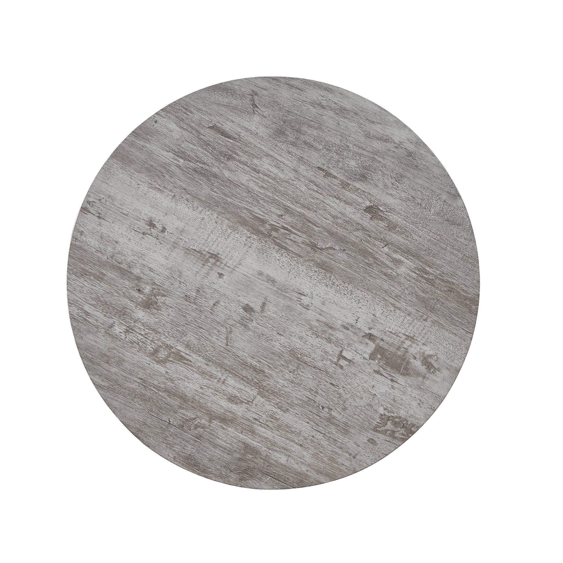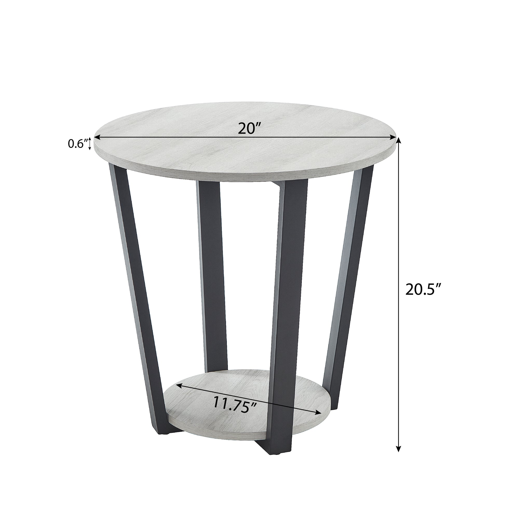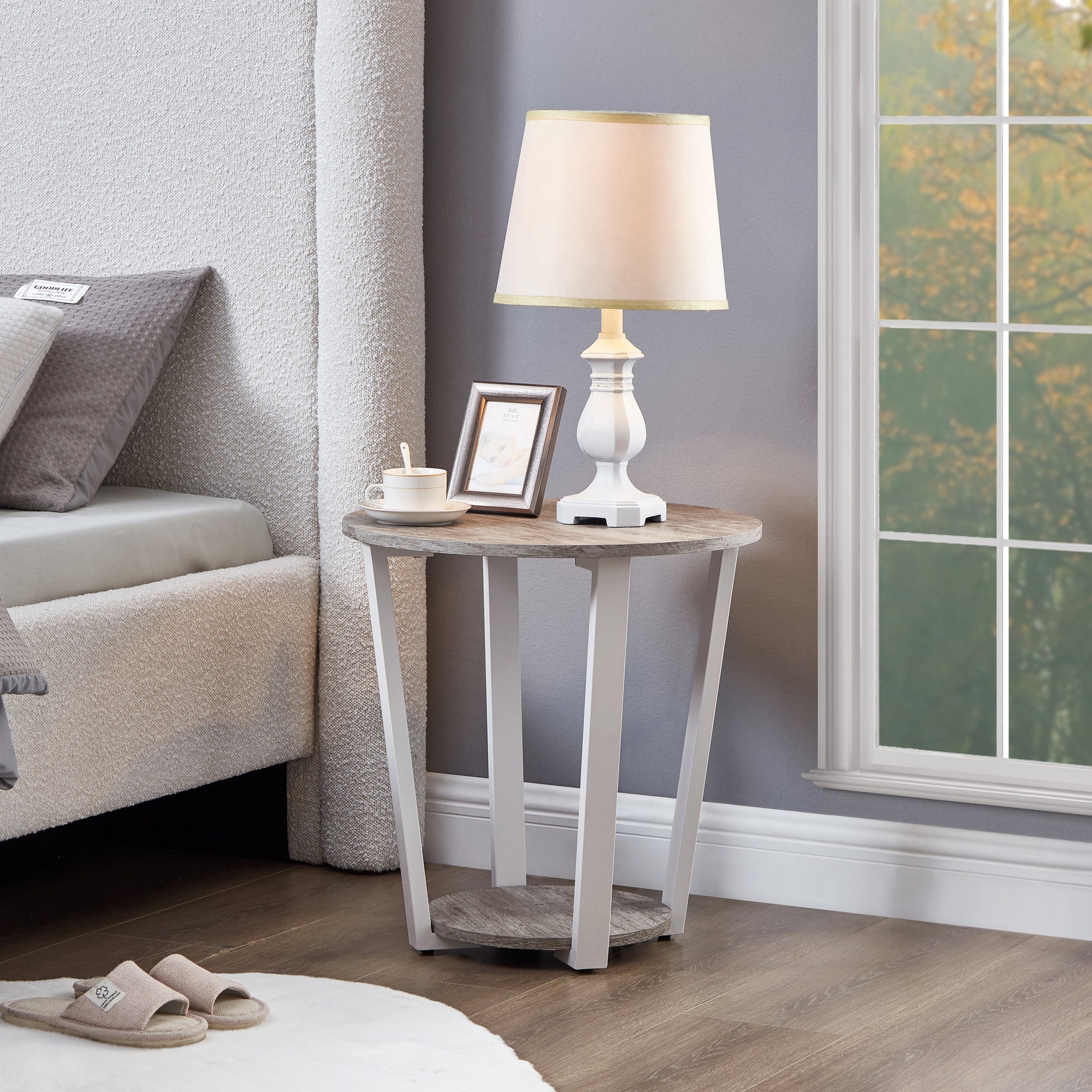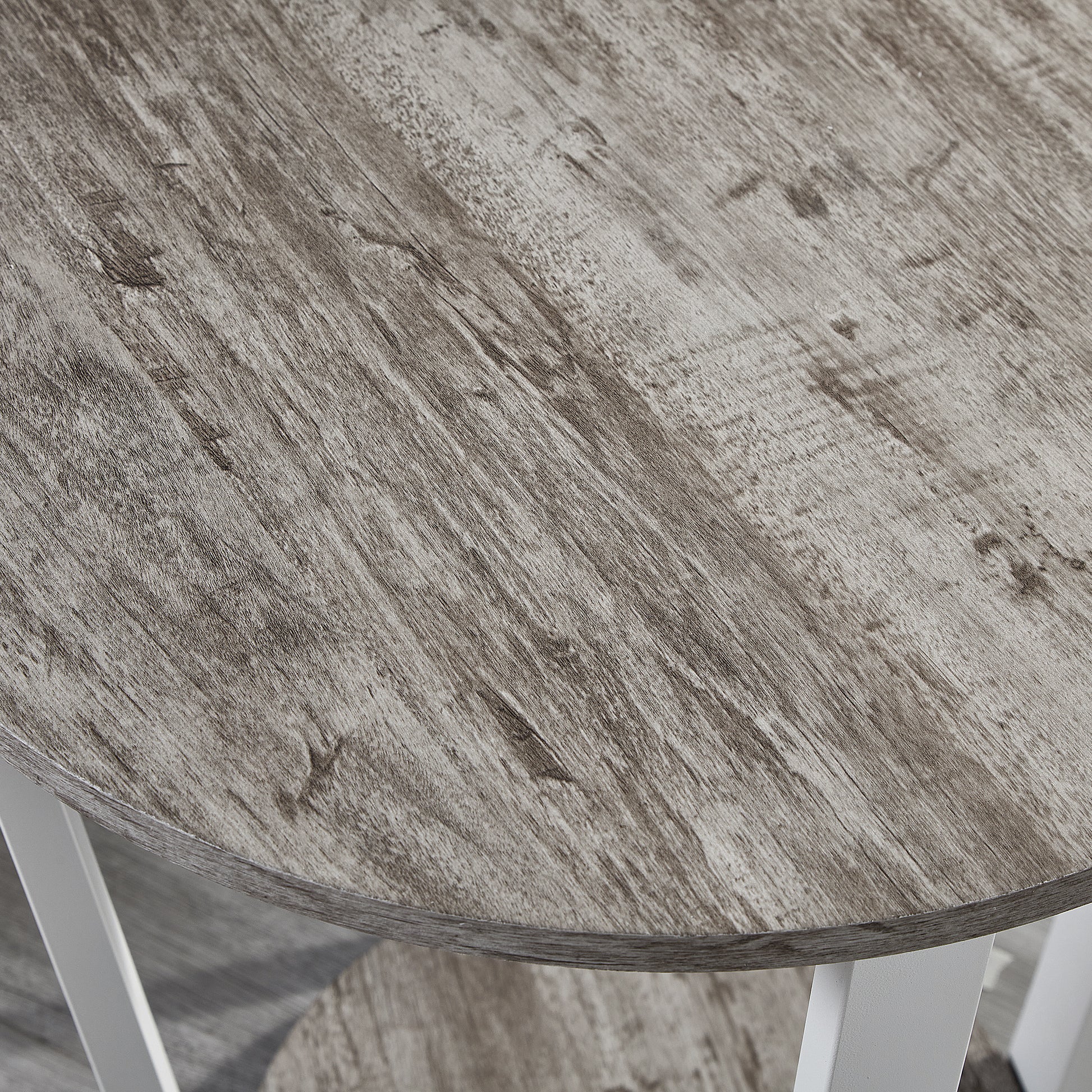 The tabletop, crafted from fine paper-laminated veneer, features a sturdy and durable round base in a matching finish. The storage shelf underneath provides space for books, magazines, or other decorative items, making it a versatile piece perfect for any home. Whether you're looking for an end table to complement your rustic decor or to add a touch of contemporary elegance to your living room, the Elysian Collection is an excellent choice. It is available in two color options: Gray and Off-White.