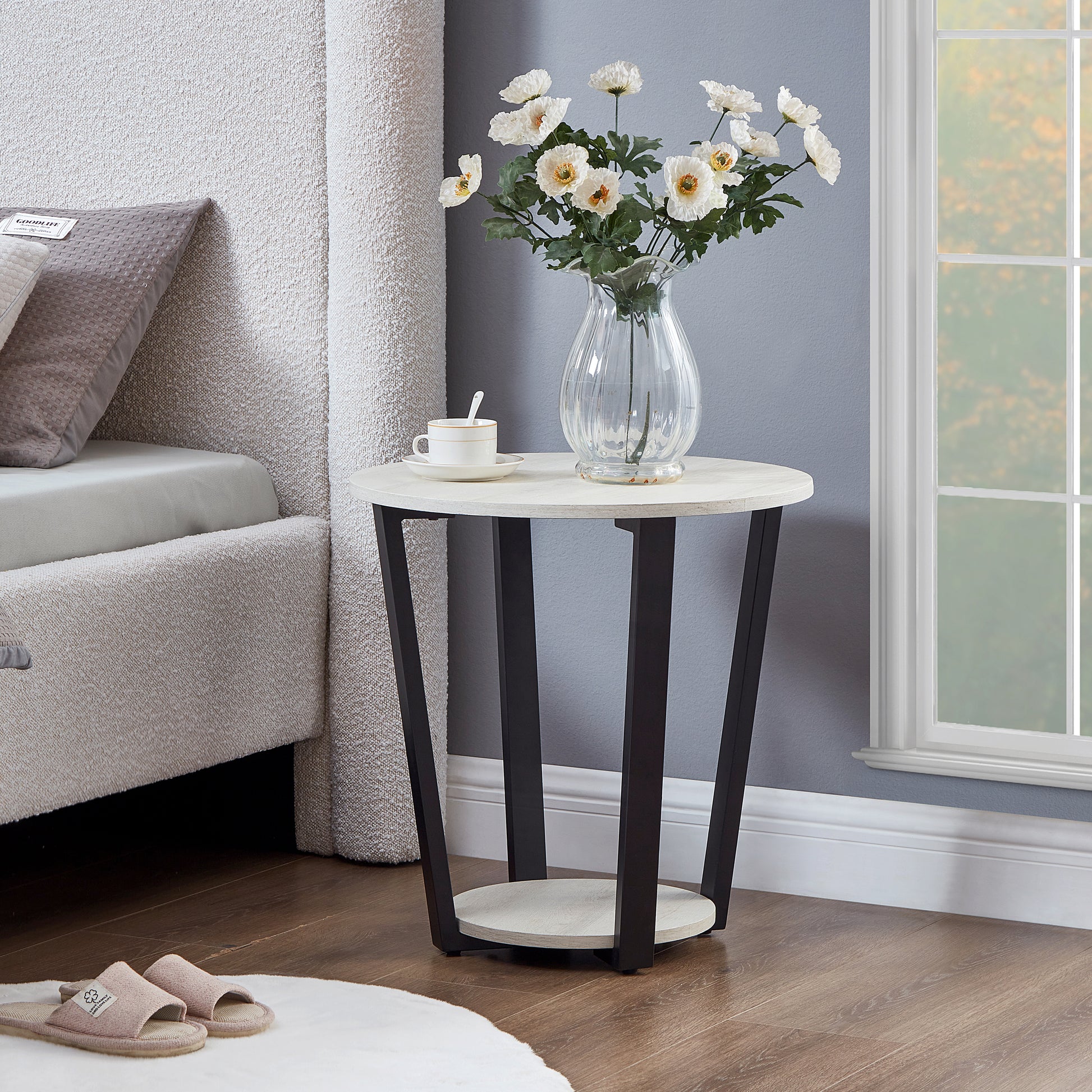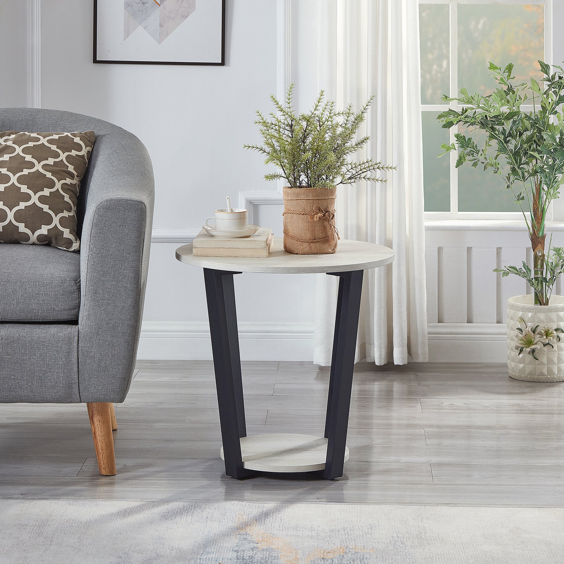 Roundhill Furniture Elysian Contemporary Round End Table with Shelf