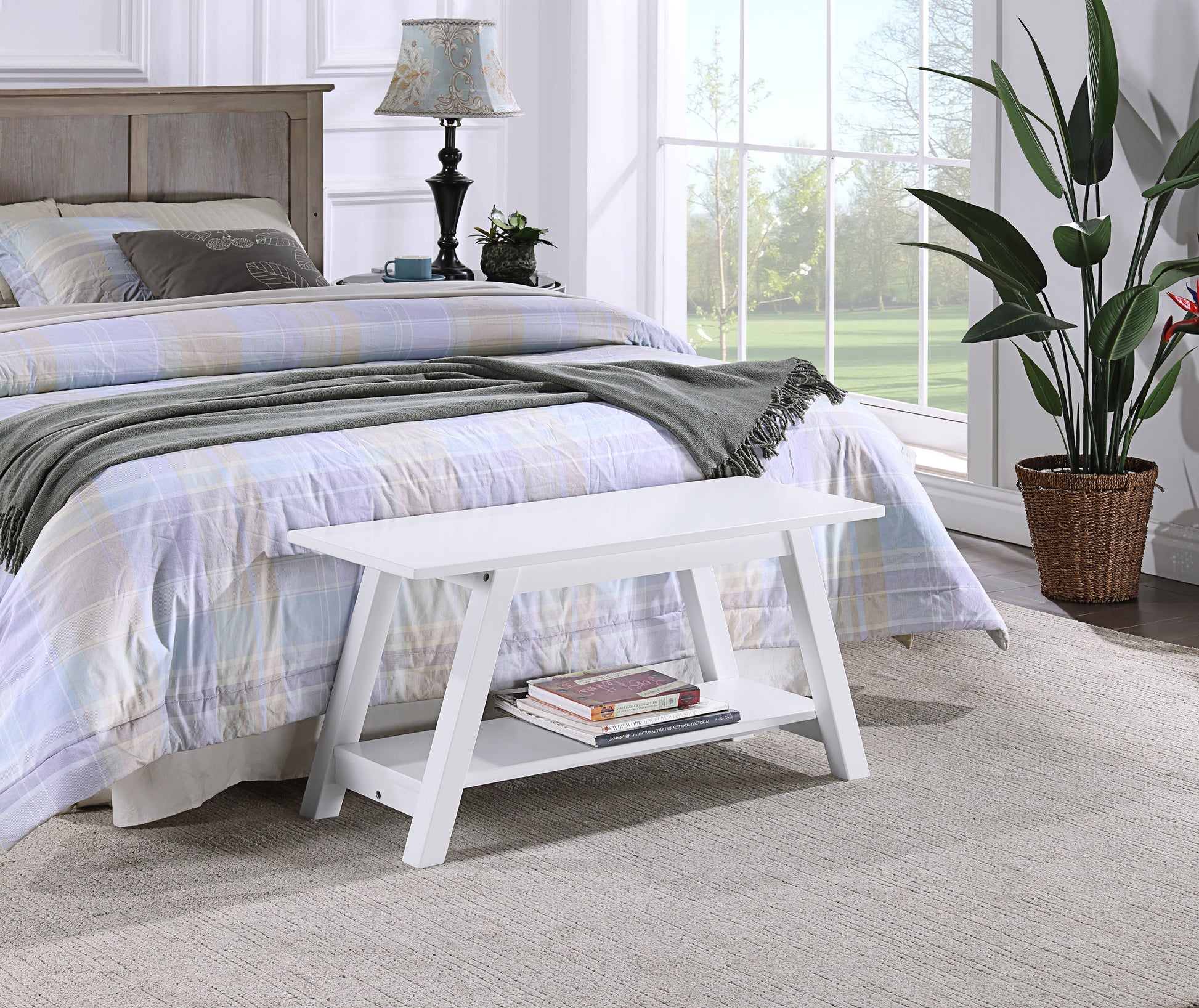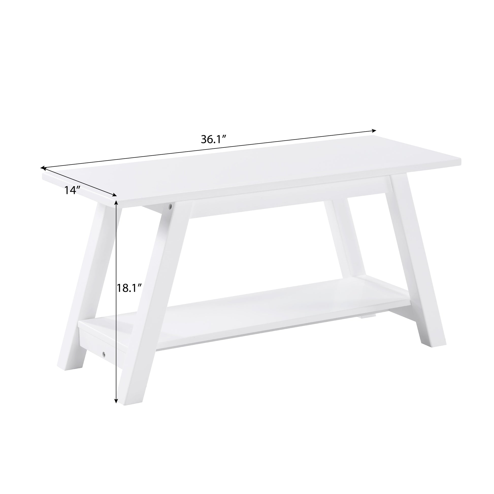Roundhill Furniture Elyz Solid Wood Bench with Shelf, 36.10-Inch Long, White