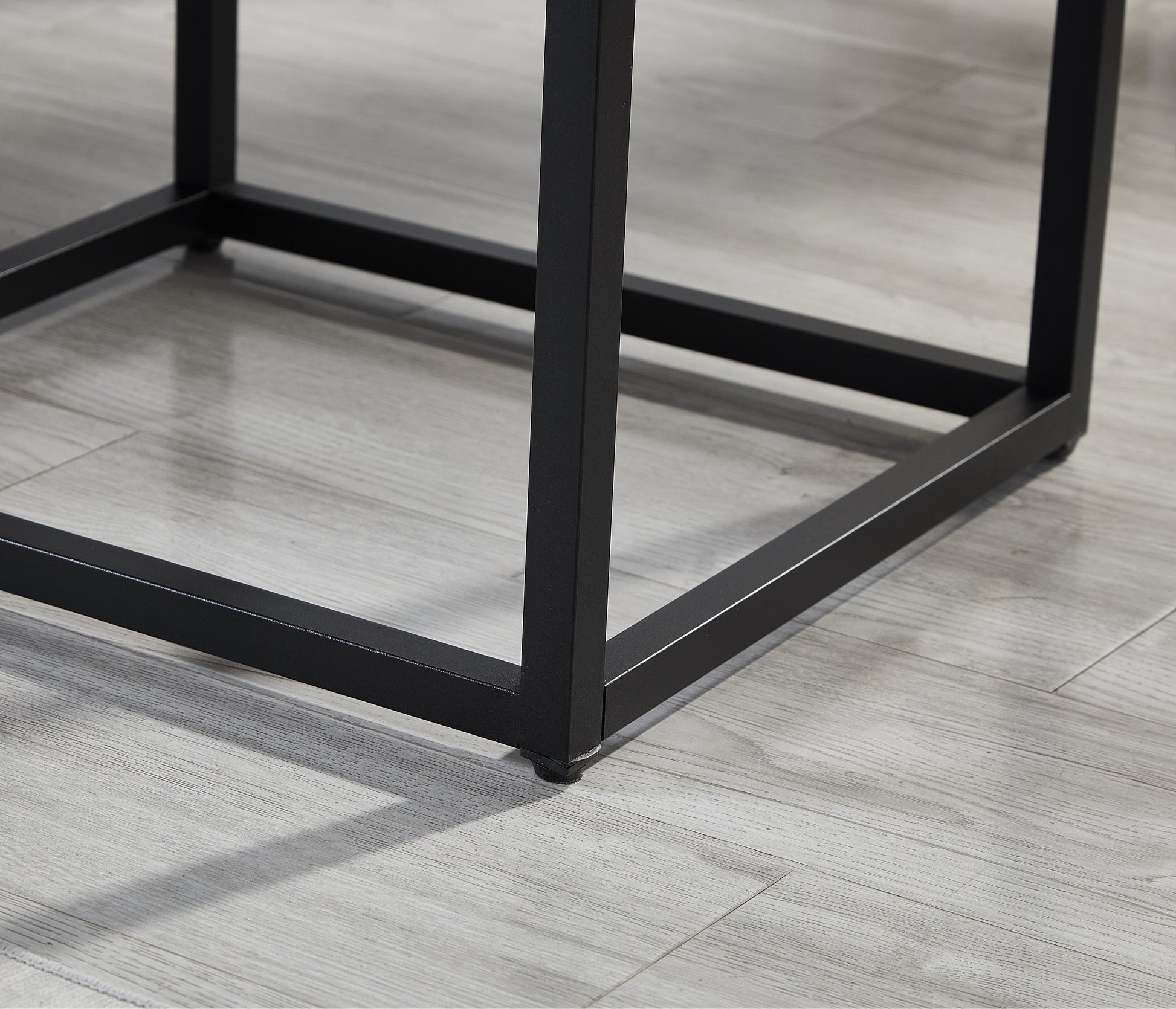 - TWO NIGHTSTANDS:??The nightstand is made from fine paper-laminated veneer, stands on a square metal base that marries visual appeal with reinforced stability. This ensemble promises a sumptuous sleeping experience.