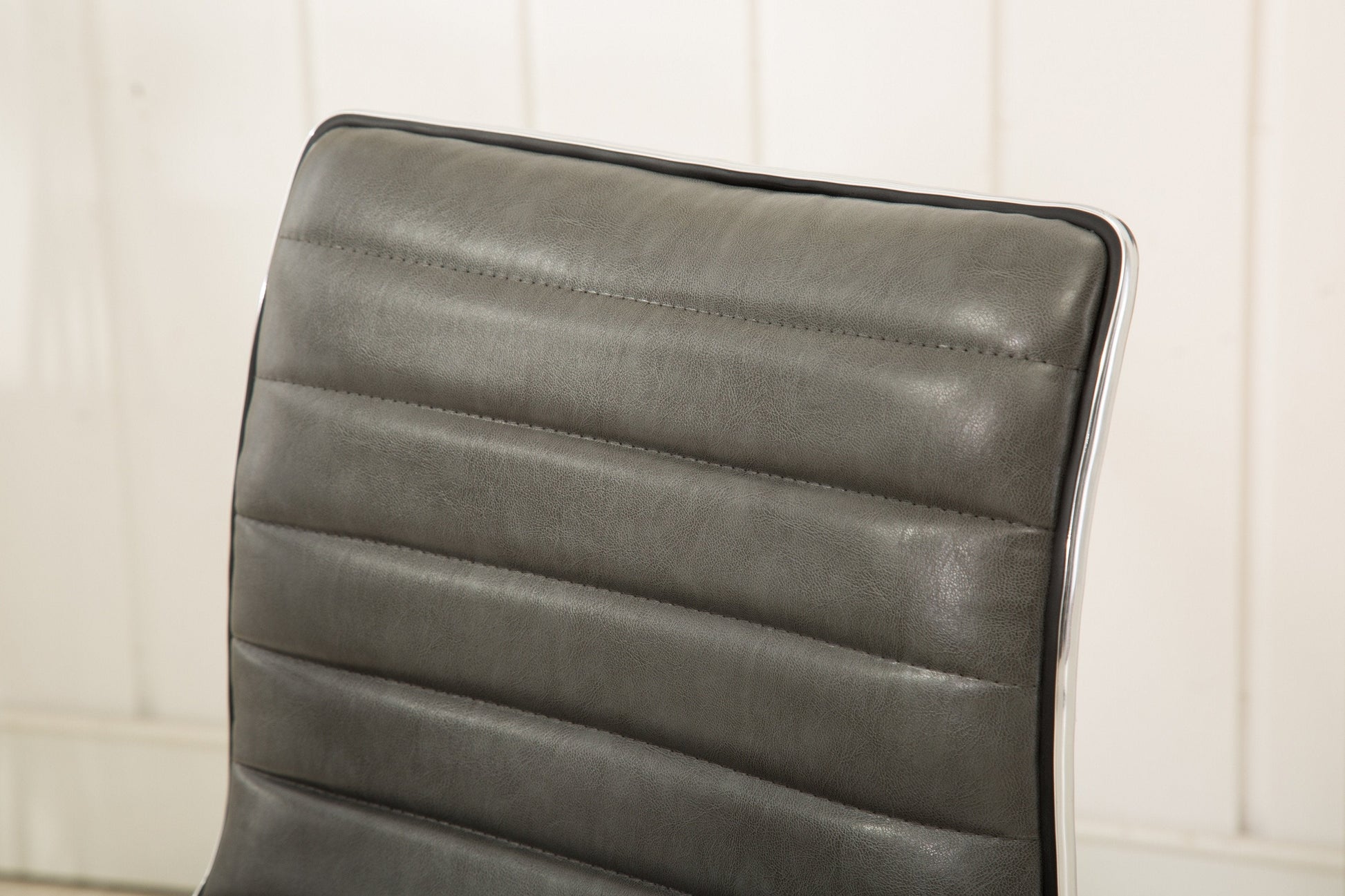 - Mid-back style chair upholstered in high-quality faux leather for a sleek and modern look.