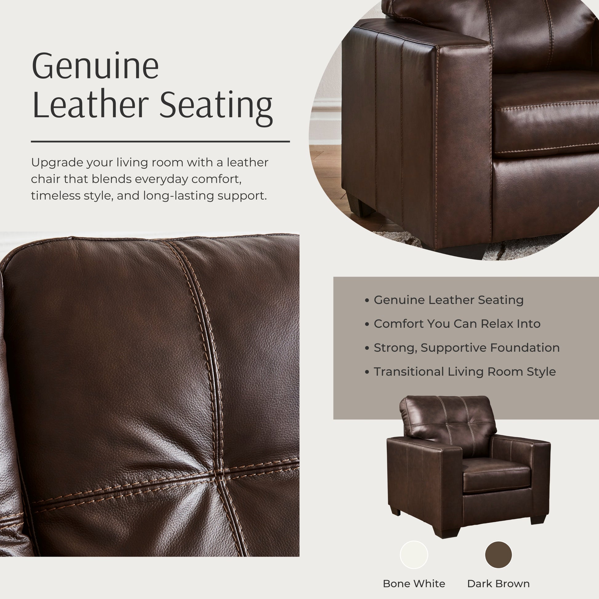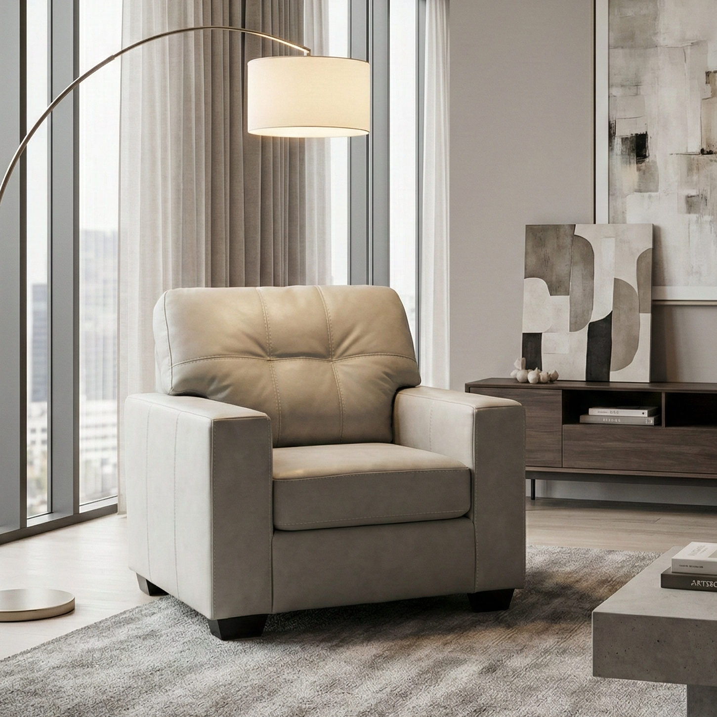 Complete your living room seating arrangement with the Roundhill Furniture Holmes Leather Upholstered Lounge Chair. This versatile piece combines contemporary clean lines with affordable luxury, making it a perfect match for both classic and modern homes. Crafted with 100% top-grain leather on the cushion top and skillfully matched faux leather on the sides, it offers a high-end feel and lasting durability. The corner-blocked frame provides a sturdy foundation, while the high-quality foam cushion wrapped in poly fiber ensures a firm yet comfortable surface. Discover the Holmes collection, a perfect centerpiece designed for lasting style and cozy daily living.