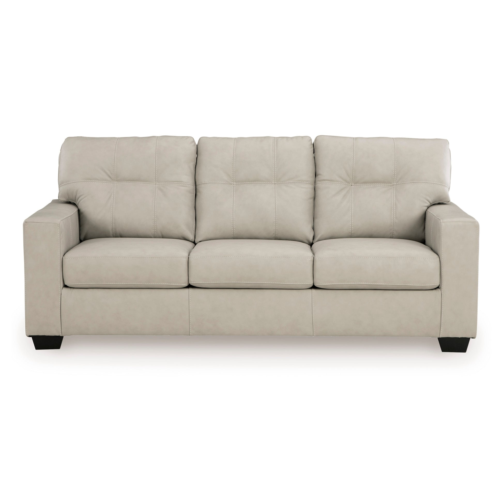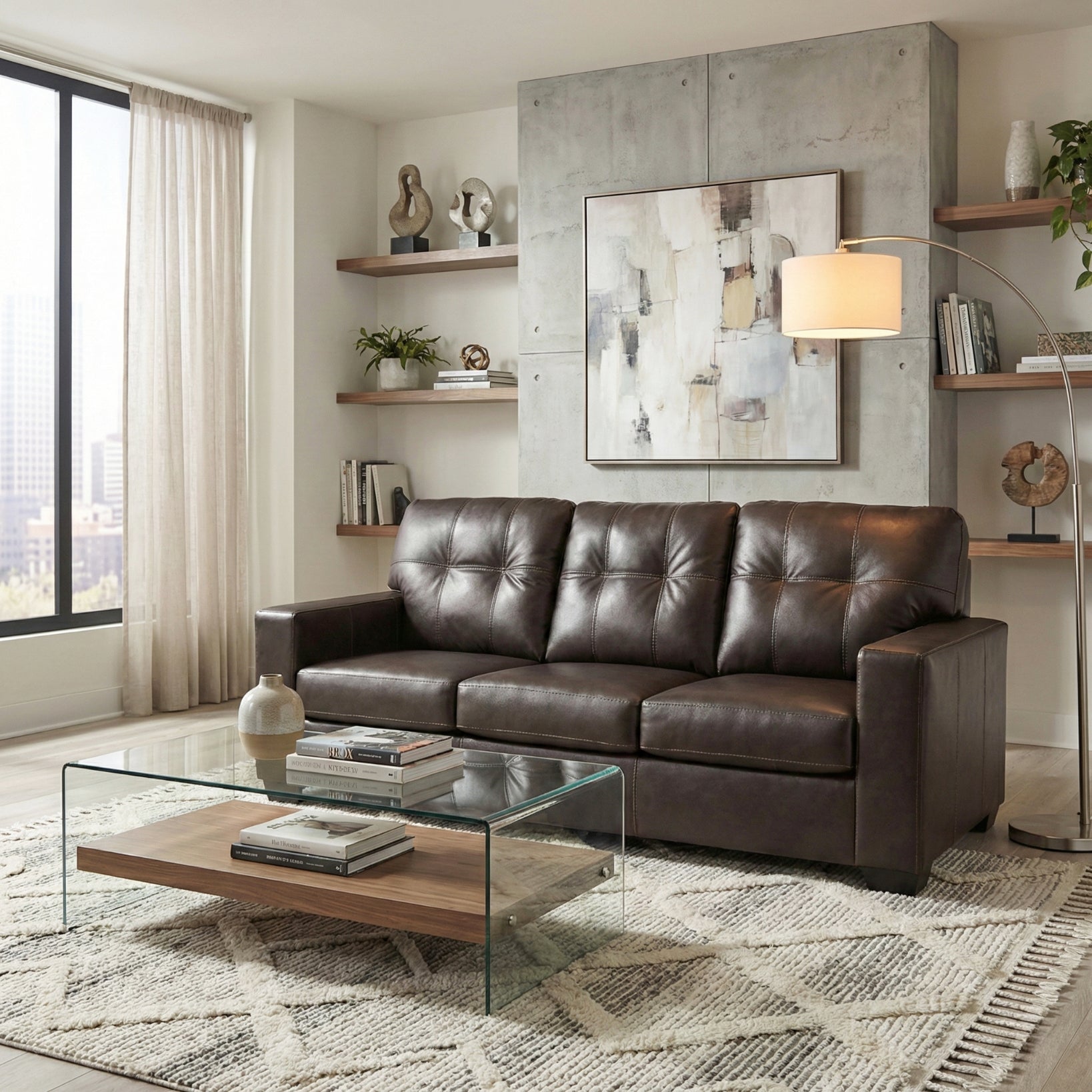 - [STYLISH LEATHER SOFA]: This contemporary upholstered sofa features a clean-lined silhouette and premium tufted details. Available in Dark Brown or Bone White, it blends skillfully matched leather and faux leather to offer a luxurious look and feel that enhances any living room decor.