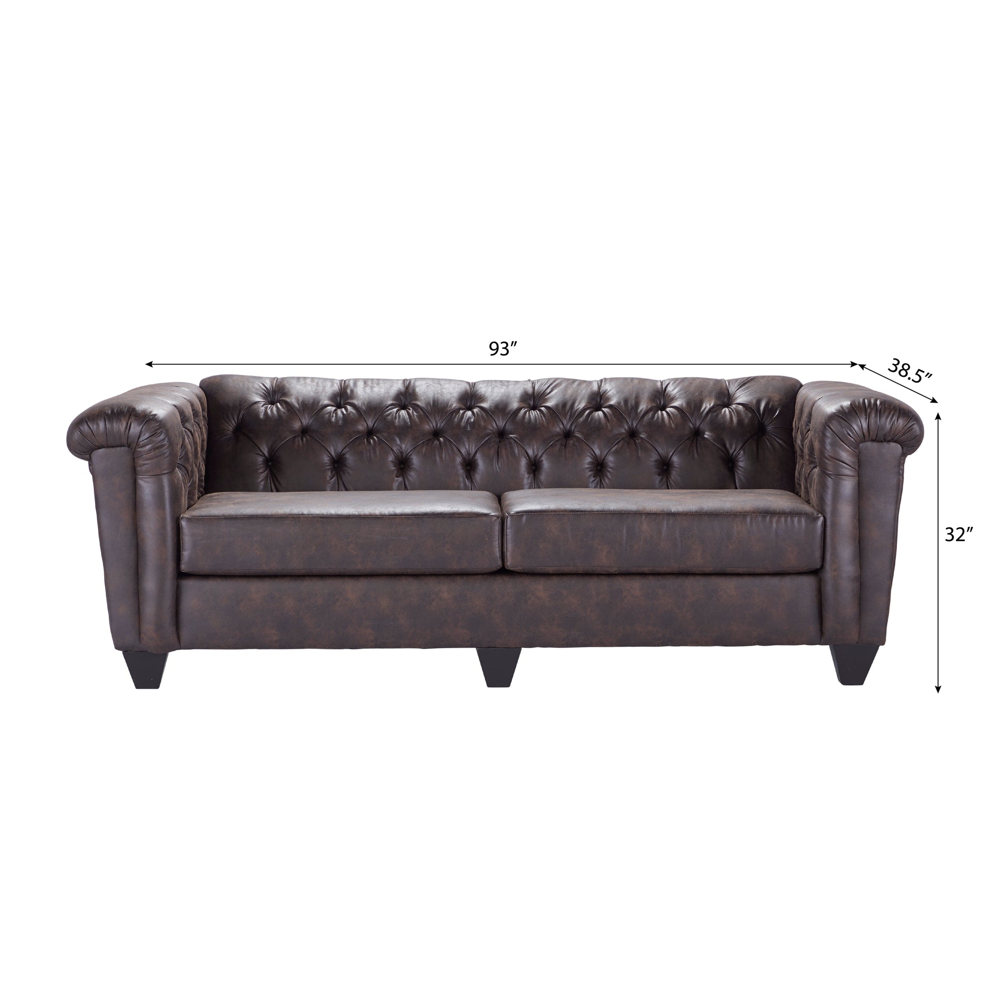 - ??? BUTTON TUFTING: This stunning sofa showcases exquisite craftsmanship with its brownie faux leather upholstery, adding a touch of relaxation to any living space. The hand-tailored button tufting on the back delivers its sophisticated appeal, creating a visually appealing focal point.