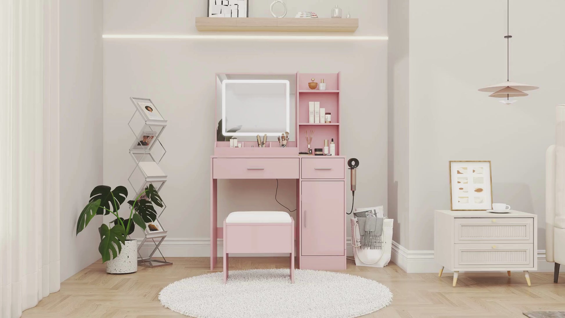 Designed for style and practicality, this Lavin Makeup Vanity set ensures every detail enhances your daily ritual. Available in soft Pink and crisp White.