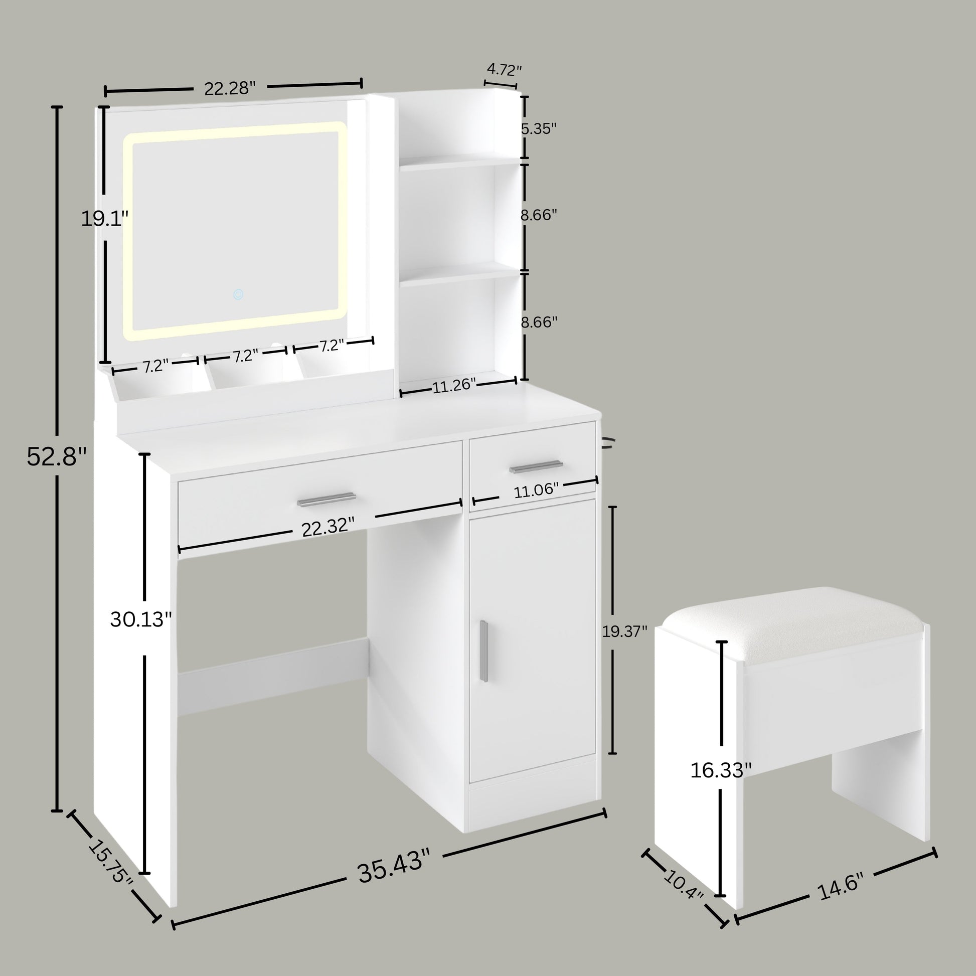 - [ELEGANT DESIGN & COMFORT STOOL]: The upholstered stool features premium foam cushioning and durable, easy-clean fabric, offering cloud-like comfort during extended beauty routines. Crafted with sturdy engineered wood and clean lines, this vanity set combines timeless elegance for a glamorous yet functional centerpiece.