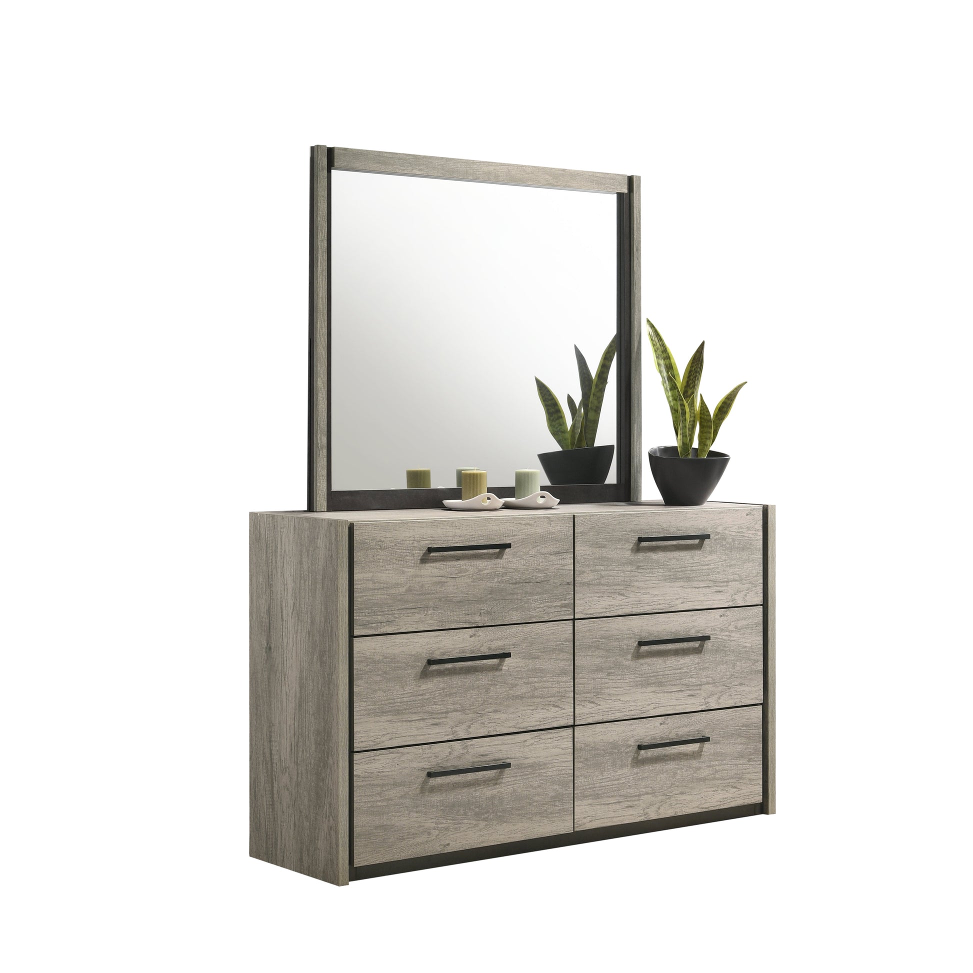 Roundhill Furniture Lenca 6-Drawer Dresser with Mirror - Weathered Gray