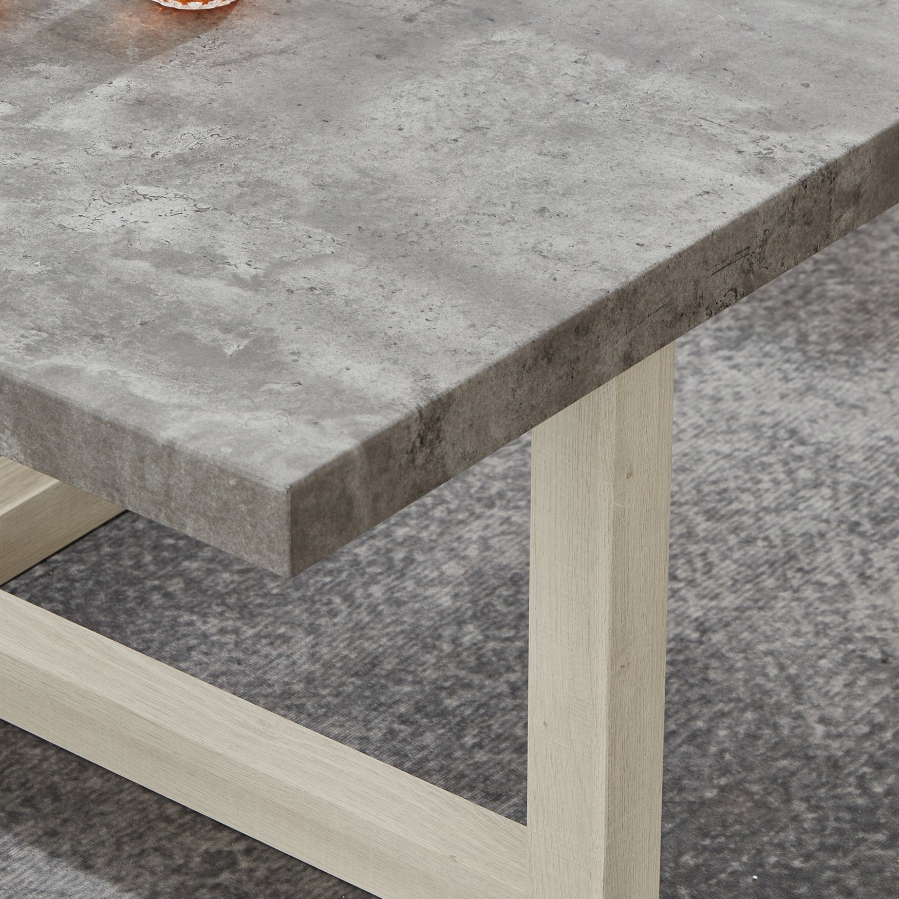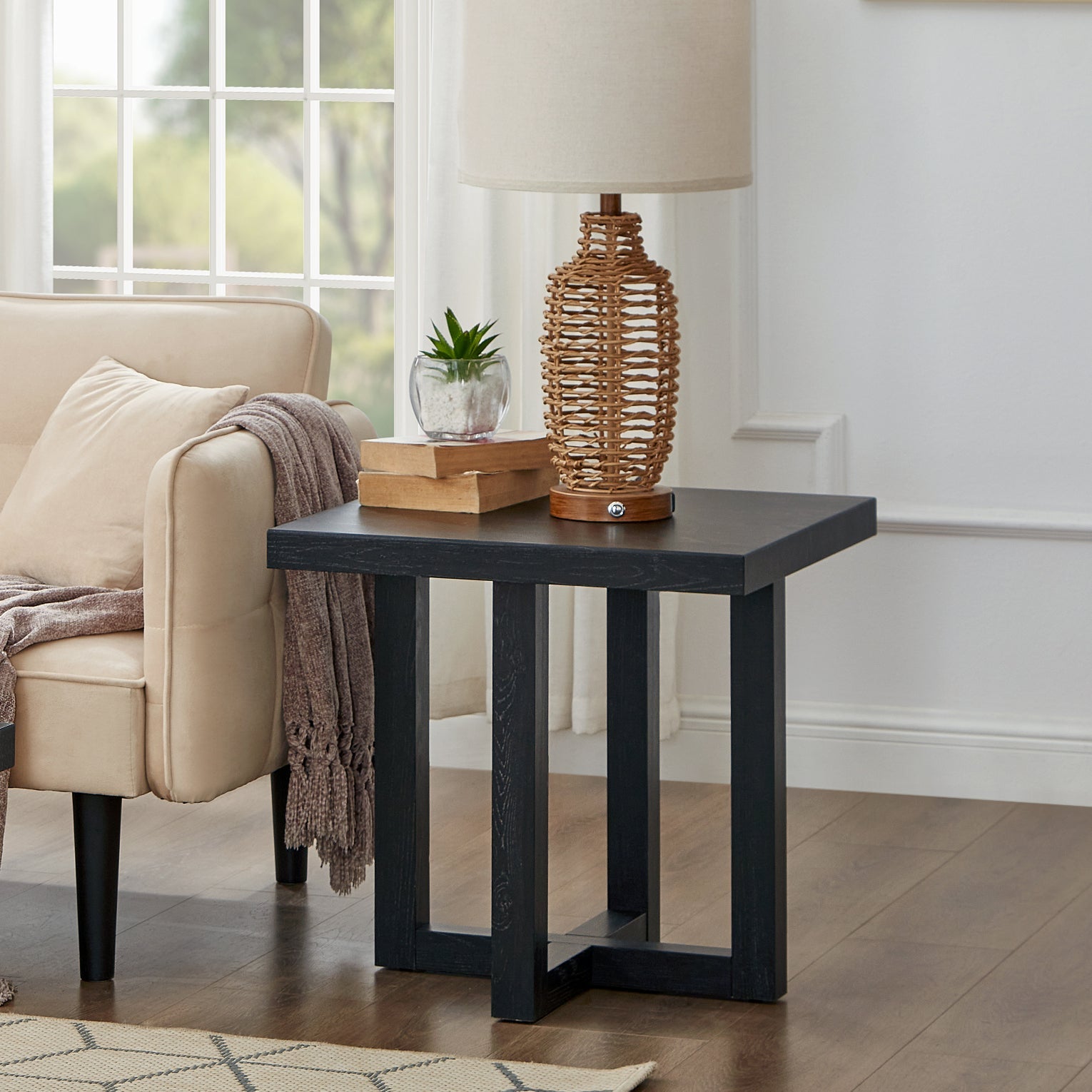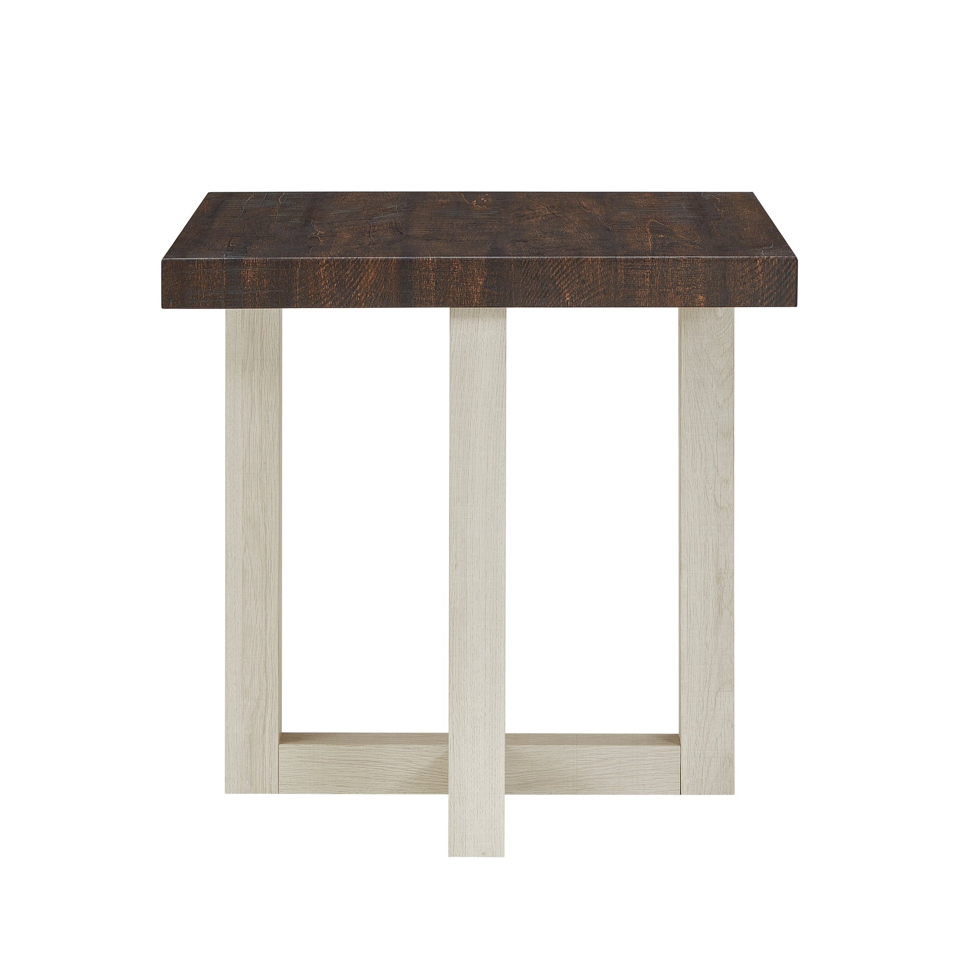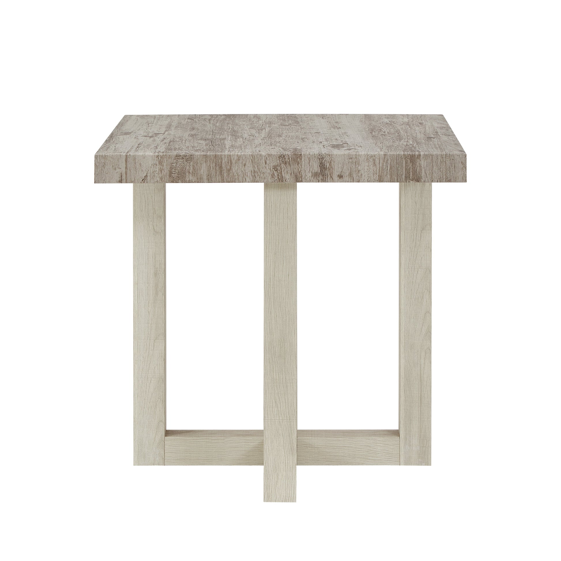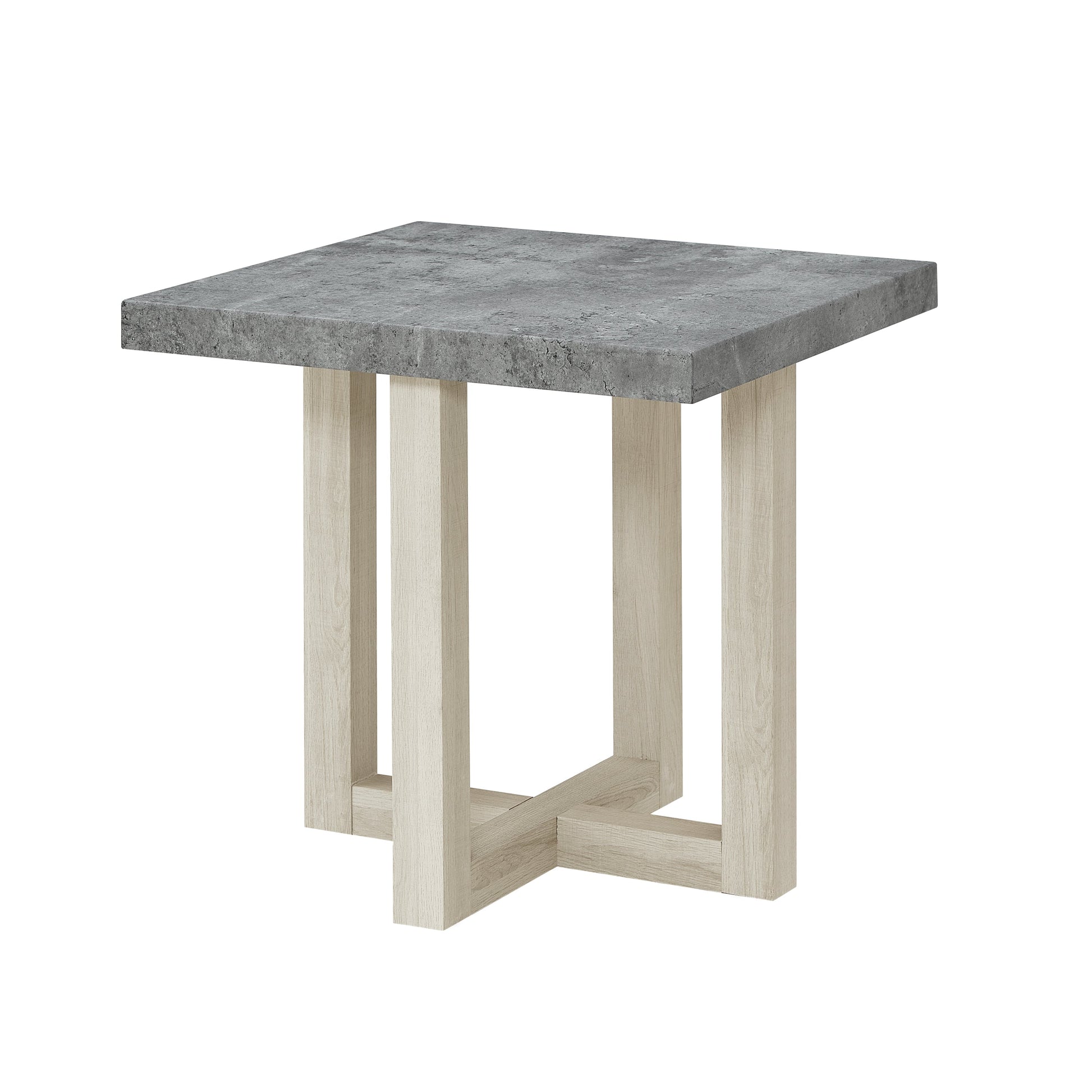 Clean lines meet rich texture in this modern end table, designed to bring subtle sophistication to any room. Available in four versatile finishes—Weathered Gray and Beige, Black, Faux Concrete and White, or Walnut & White—this piece effortlessly complements a variety of color palettes and interior styles. Its compact form is perfect for placing next to a sofa or accent chair, offering a stylish spot for your coffee, books, or décor. Crafted with a durable MDF top and supported by a bold, intersecting base, this table delivers both form and function in a refined silhouette.