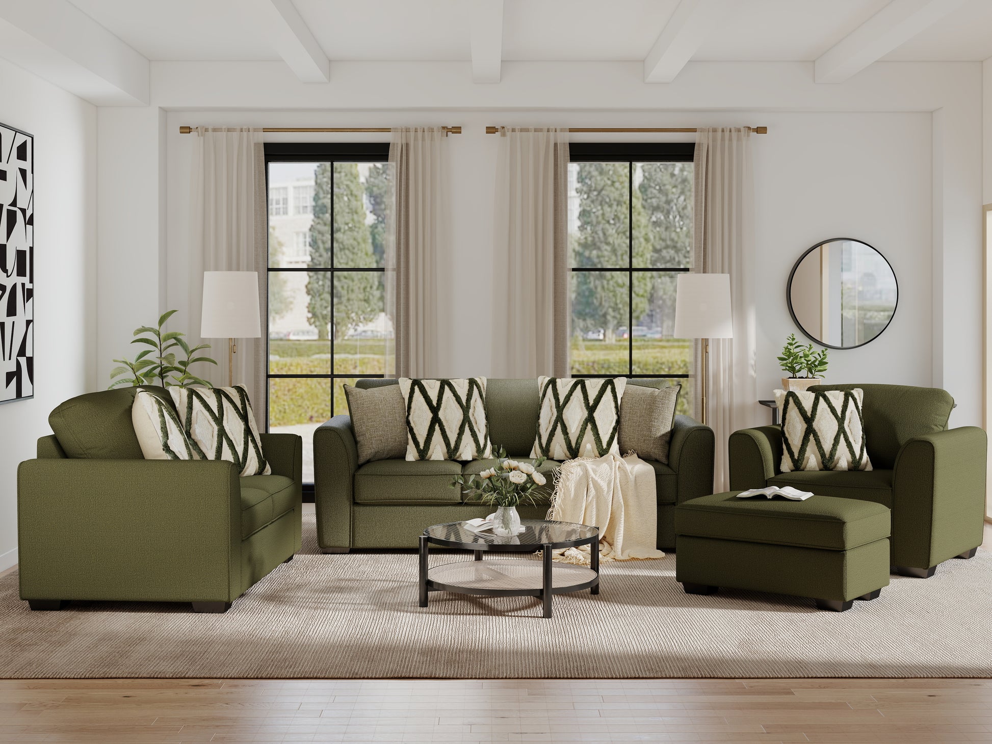 - Complete 4-Piece Coordinated Set: Includes sofa, loveseat, armchair, and a matching ottoman, this set offers a seamless blend of comfort and cohesive style. With flippable and removable cushions.