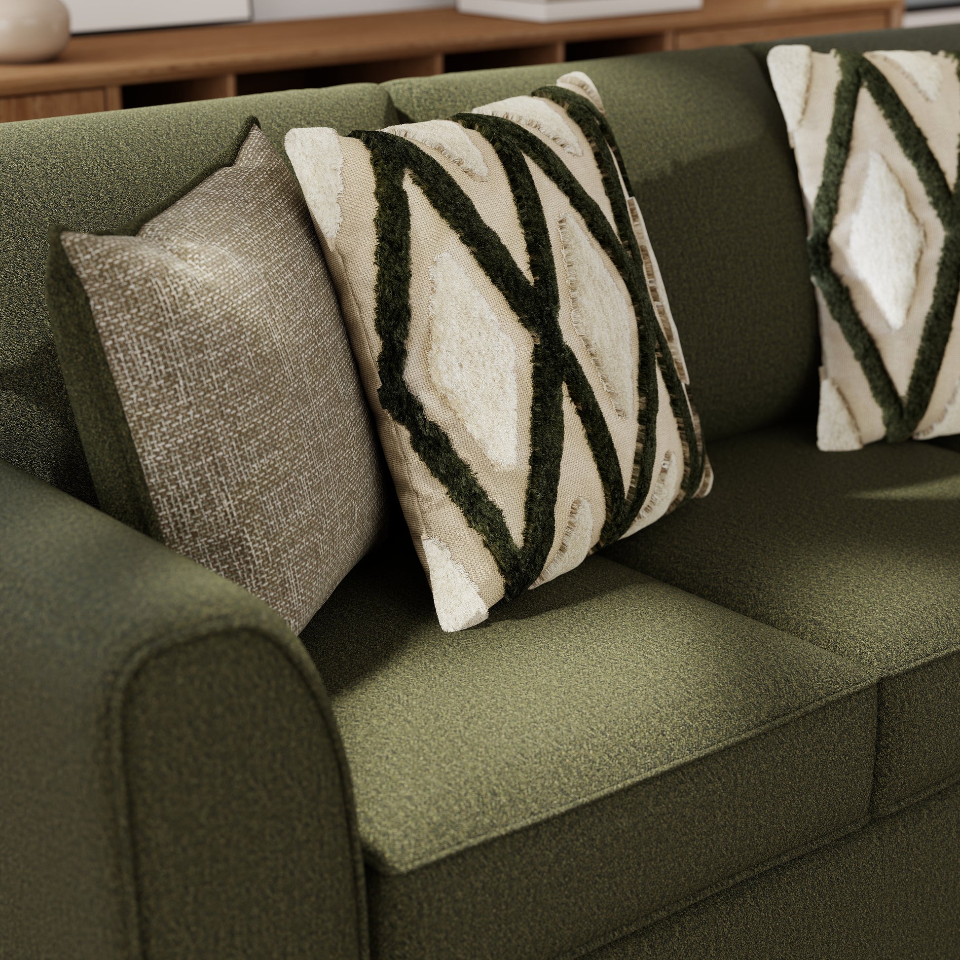 - Layered Comfort & Texture: Comes with seven soft, textured accent pillows that introduce geometric interest and tactile contrast—making every seat a plush and inviting spot for family or guests.