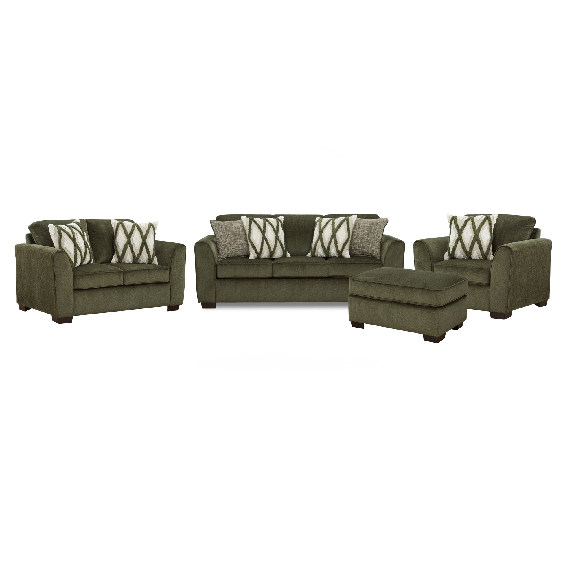 Roundhill Furniture Marvella 4-Piece Living Room Set, Sofa, Loveseat, Chair, and Ottoman with Mosswood Chenille Upholstery
