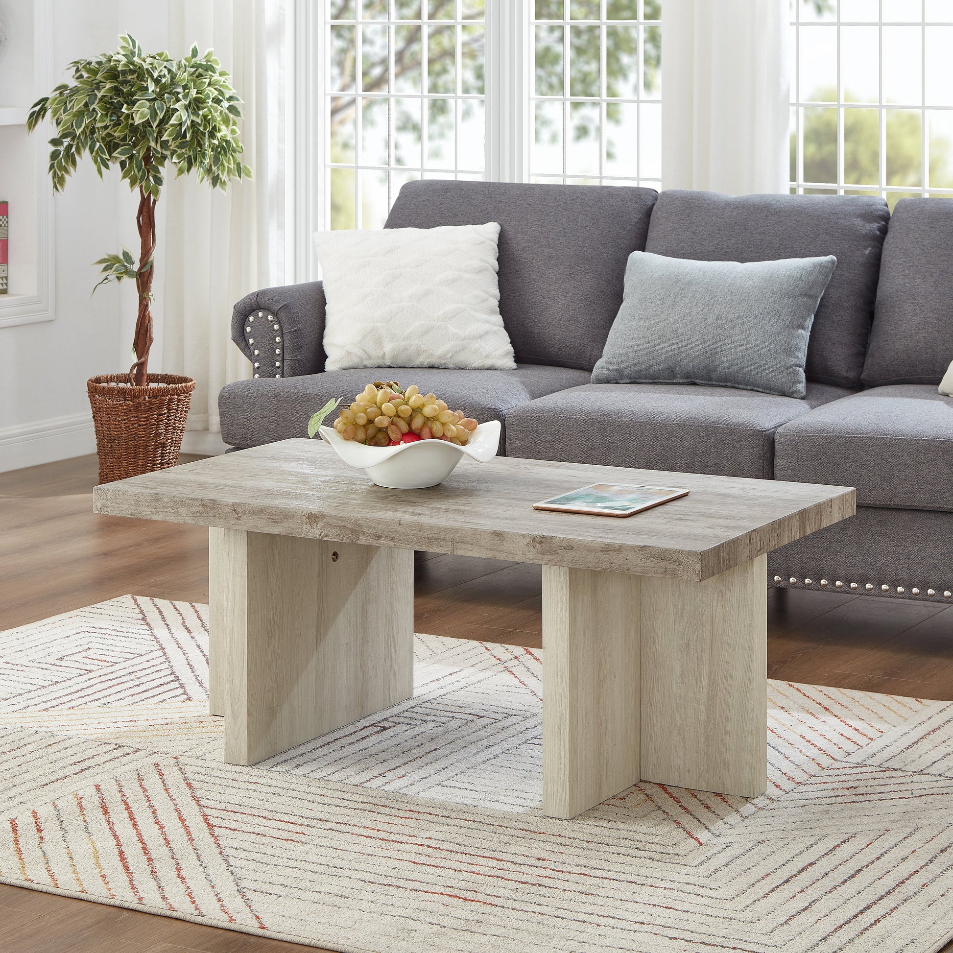 - PREMIUM DURABILITY: The coffee table is expertly crafted and designed for durability, with attention to detail, the tabletop is meticulously made from MDF, while the double-pillar base provide both aesthetic charm and enhanced stability.