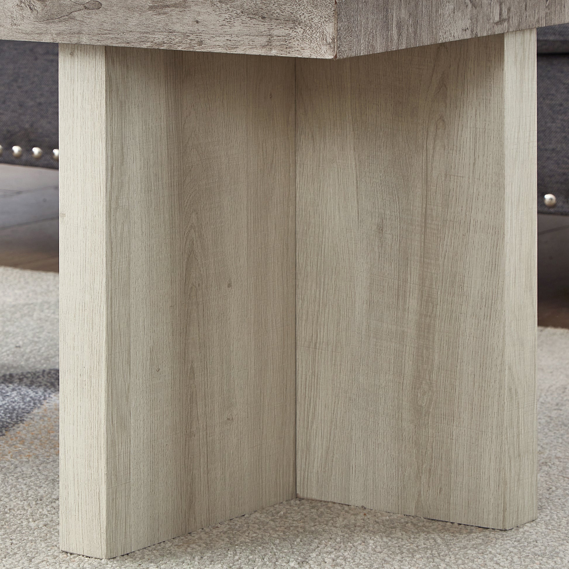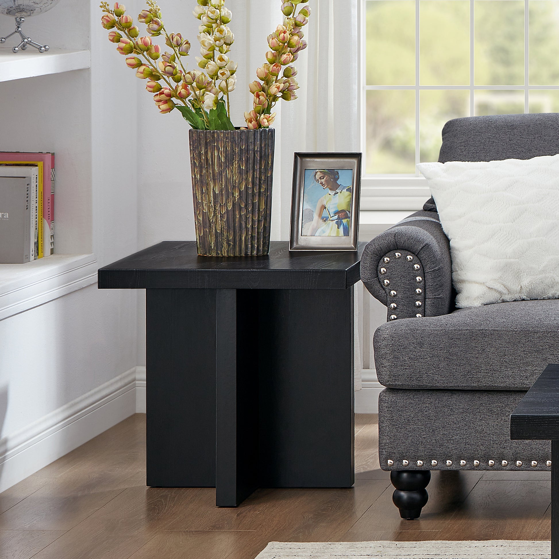 - SCULPTURAL MODERNITY: This end table features a unique design with sculptural lines and natural wood grain accents. Its double-pillar style and T-shaped base combine artful craftsmanship with contemporary flair. Whether used as an end table or bedside nightstand, its rich finish adds distinctive charm.